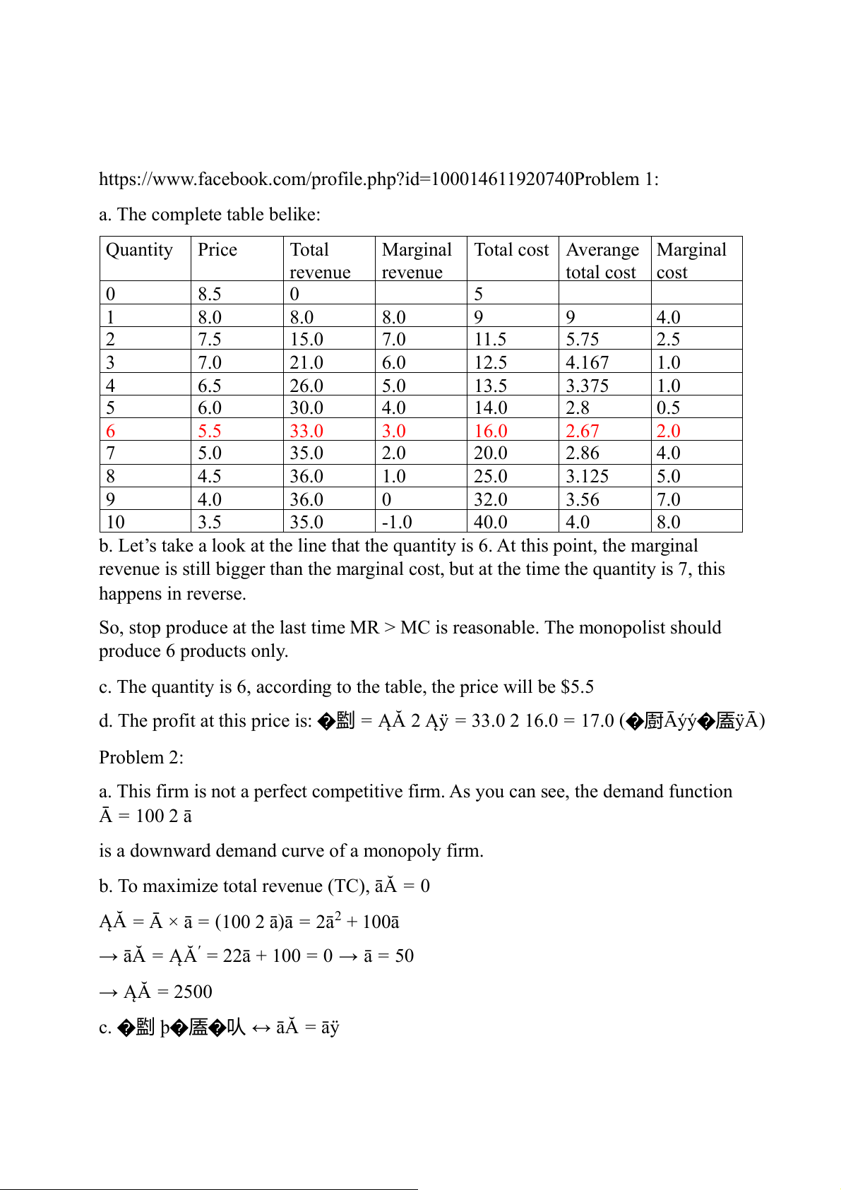 https://www.facebook.com/profile.php?id=100014611920740Problem 1: a. The complete table belike: Quantity Price Total