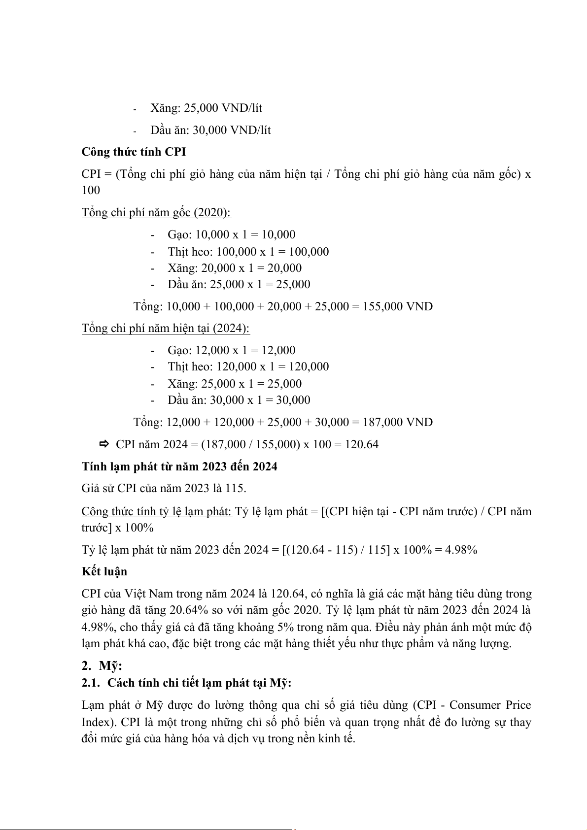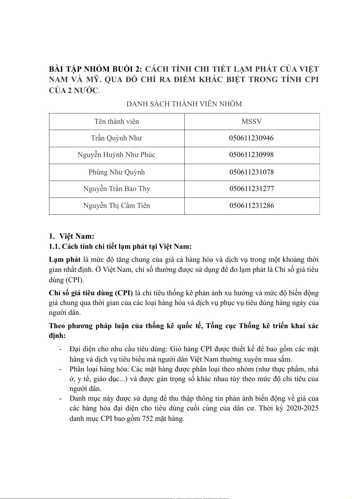 BÀI TẬP NHÓM BUỔI 2: CÁCH TÍNH CHI TIẾT LẠM PHÁT CỦA VIỆT