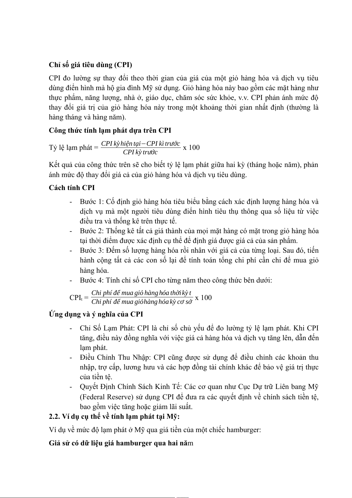 - CPI không chỉ đo giá hamburger mà còn tổng hợp từ nhiều nhóm hàng hóa và