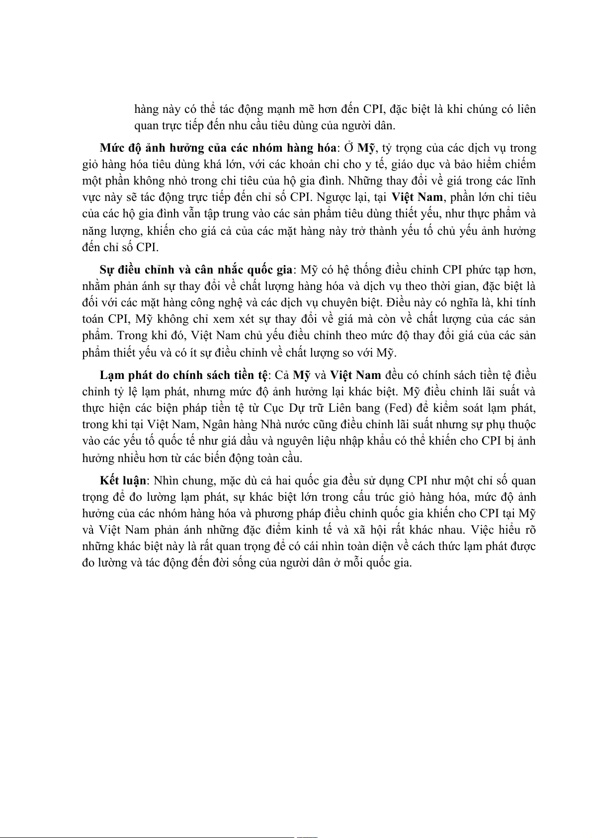 - Trong khi đó, tại Việt Nam, CPI chủ yếu phản ánh sự biến động của các mặt
