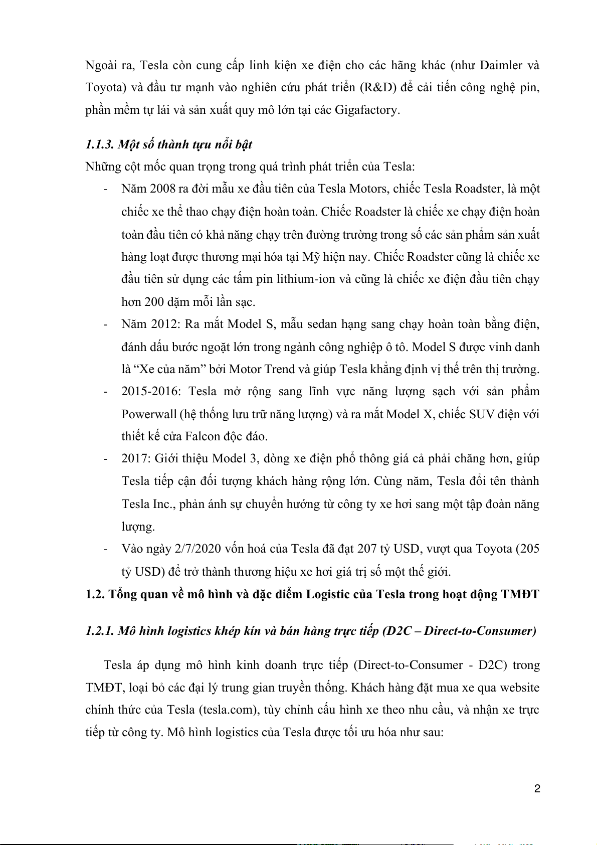 tiếp từ công ty. Mô hình logistics của Tesla được tối ưu hóa như sau: 2