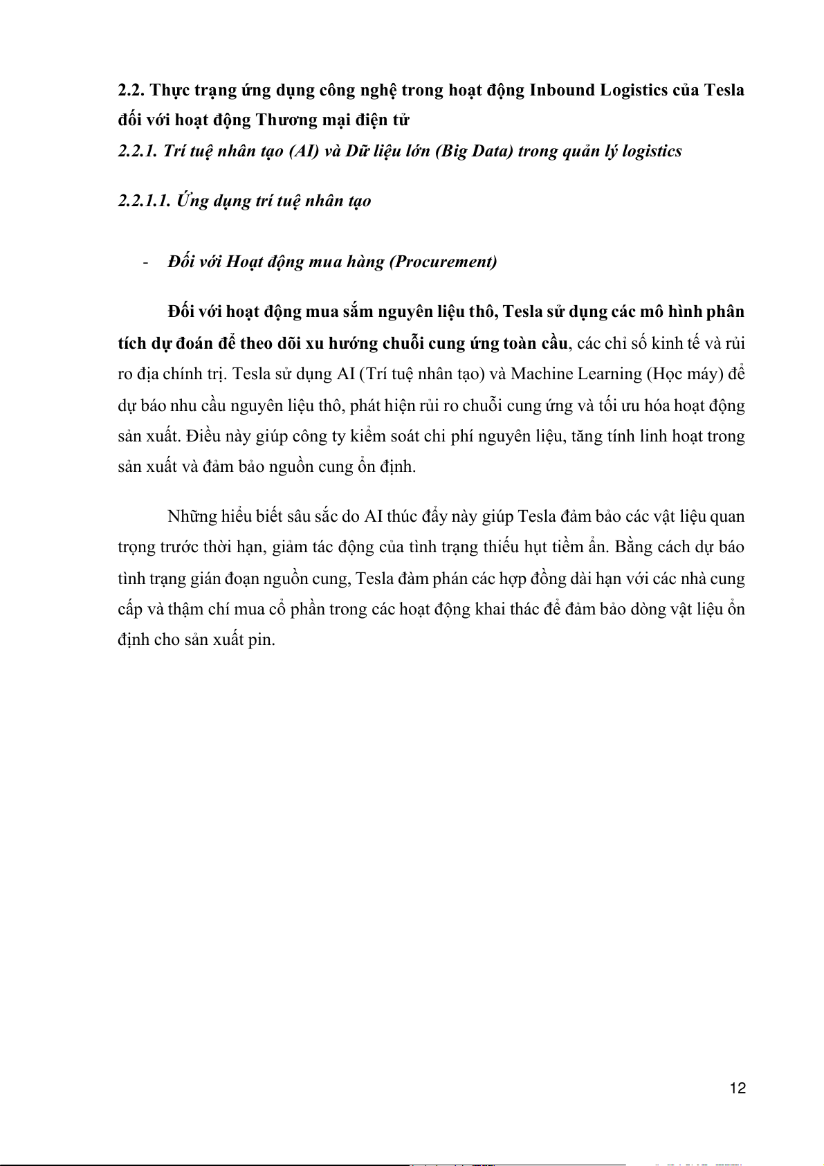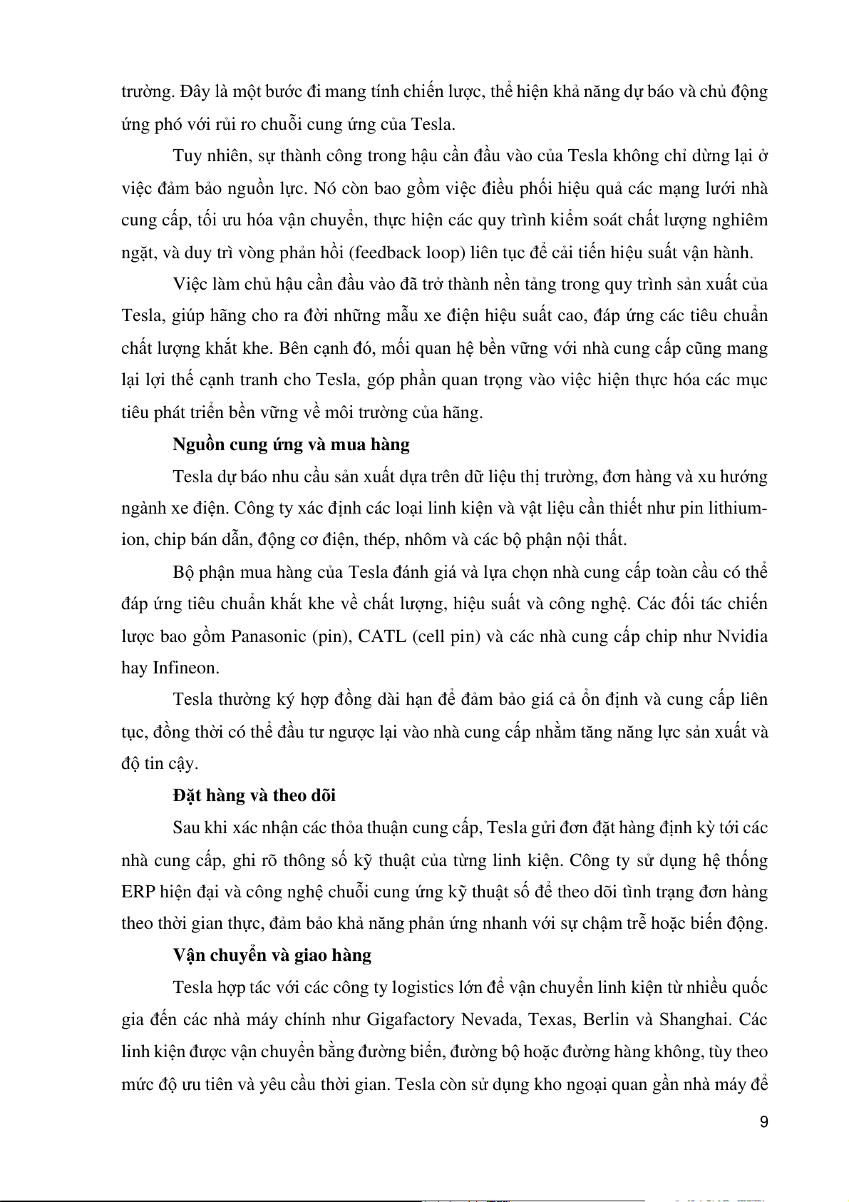 1.2.2. Đặc điểm chuỗi cung ứng và logistics của Tesla