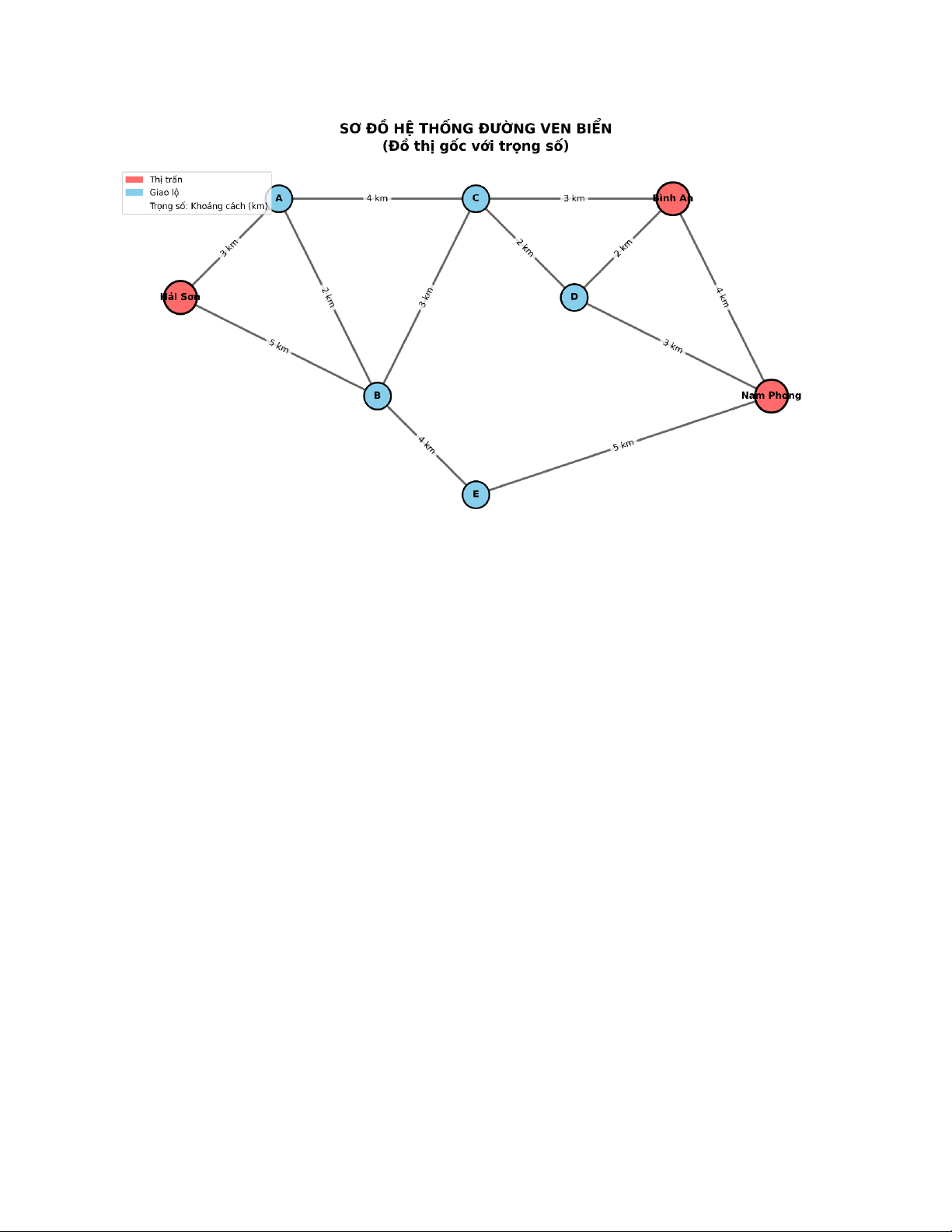 các cạnh mang trọng số là độ dài đoạn đường (km).