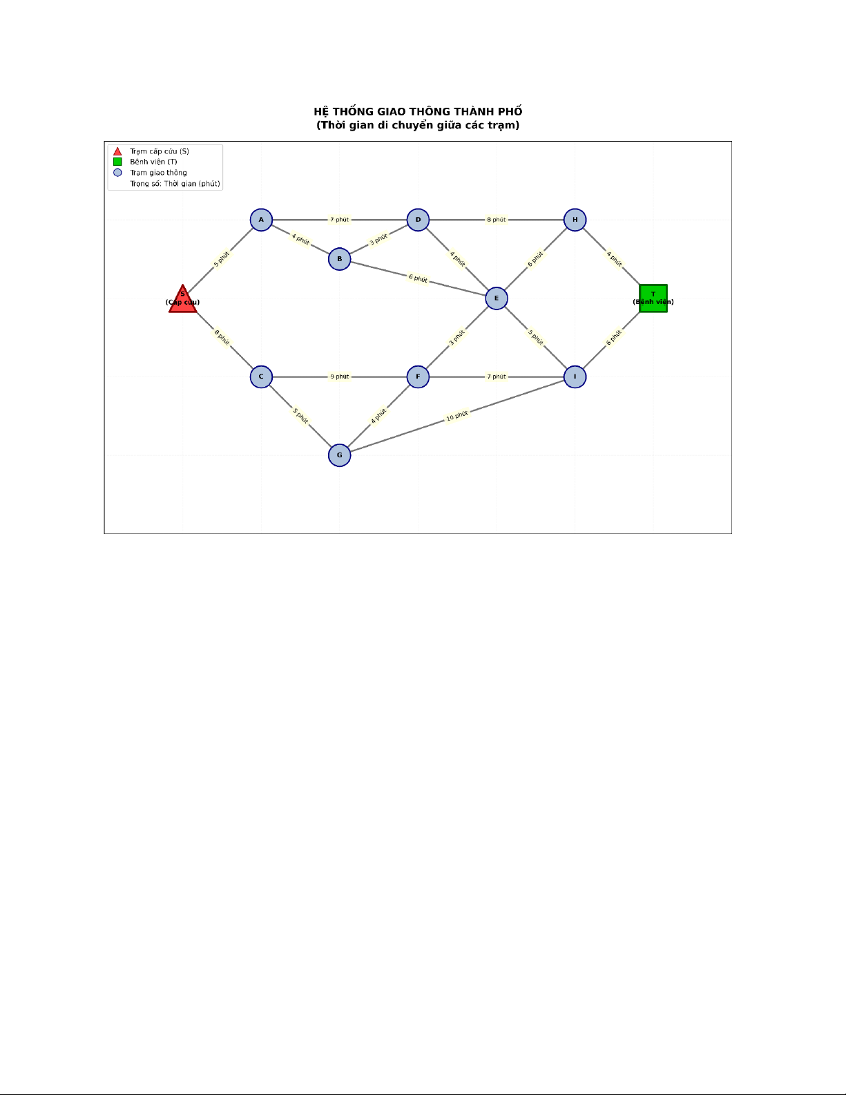 Một xe cấp cứu xuất phát từ trạm 𝑆 và cần đến bệnh viện đặt tại trạm 𝑇.