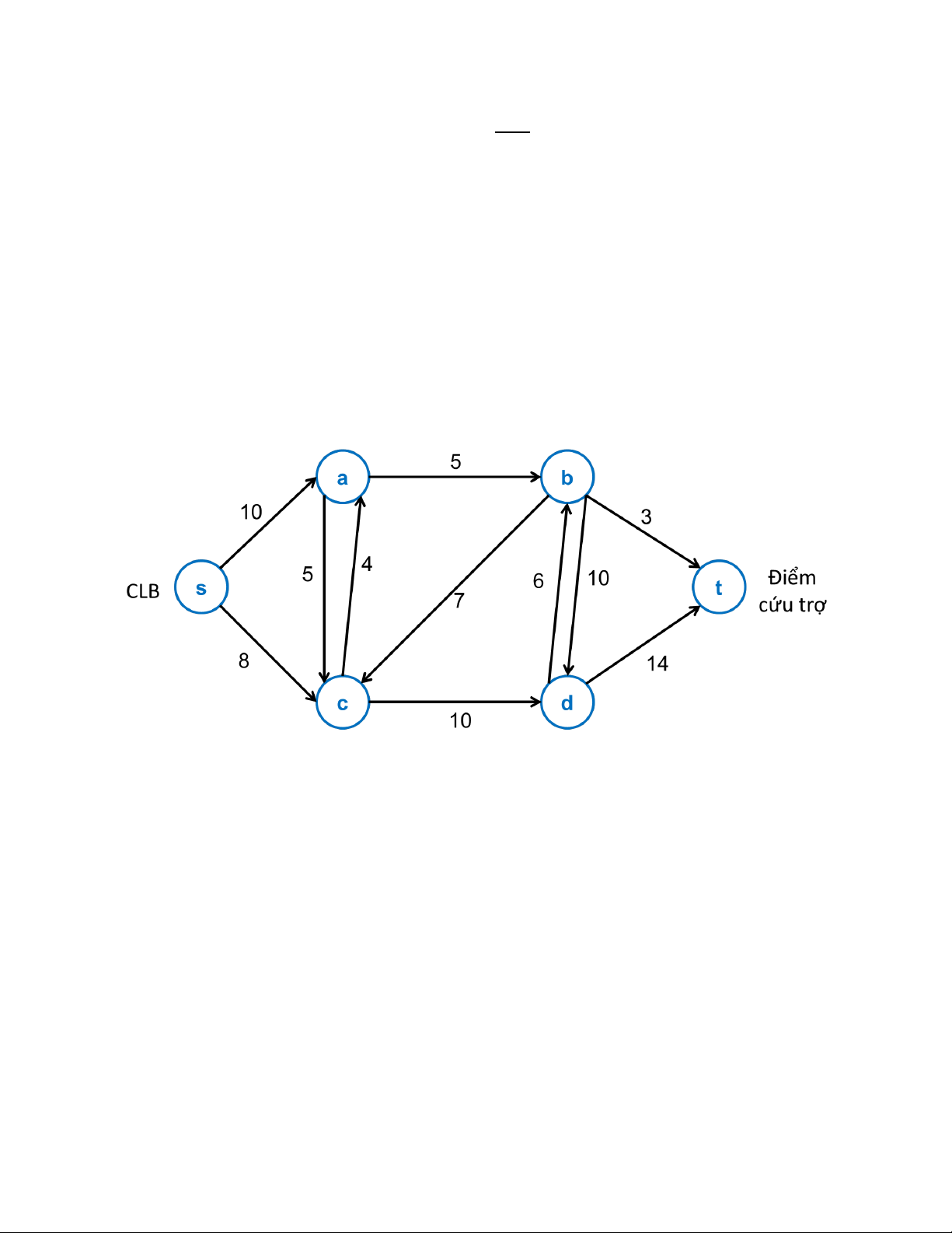 tối đa có thể vận chuyển từ điểm bắt đầu là CLB (đỉnh s) đến điểm cứu trợ (đỉnh t). (Sinh