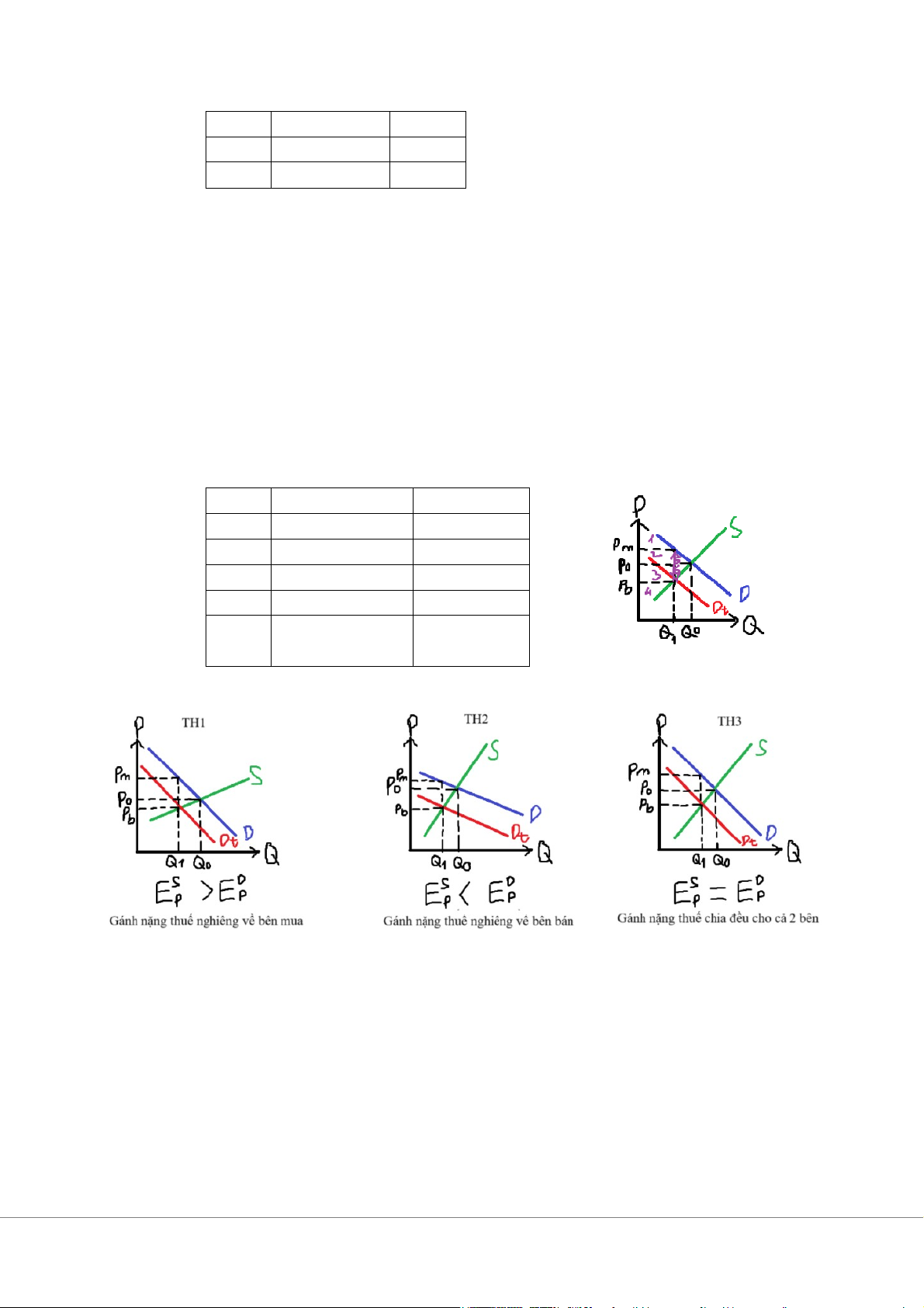 * Nhân tố chi phối gánh nặng thuế là: E D S P và EP