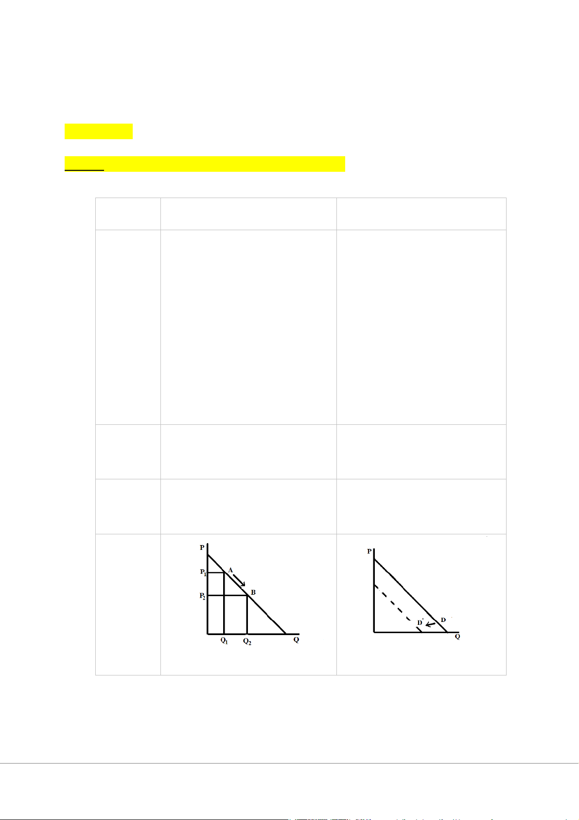 CÂU 2: Phân biệt sự thay đổi của cầu và lượng cầu. Tiêu chí Lượng cầu QDCầu D