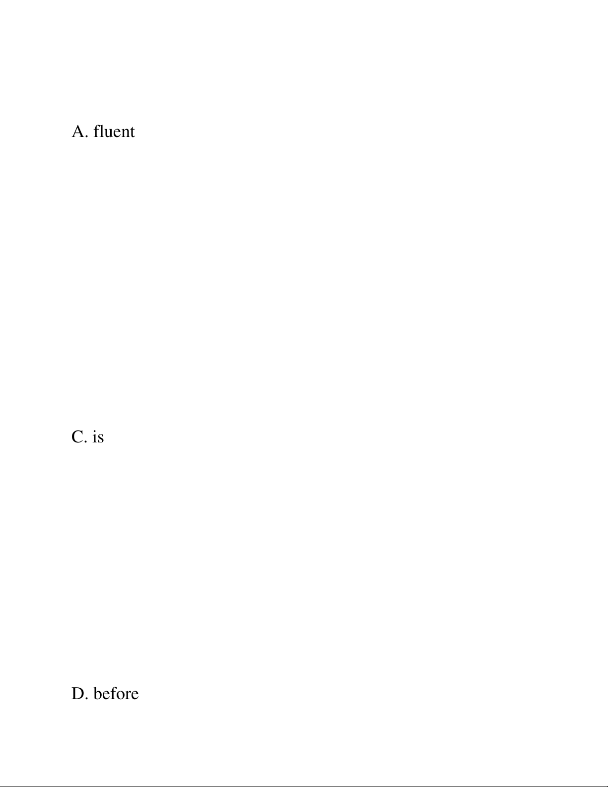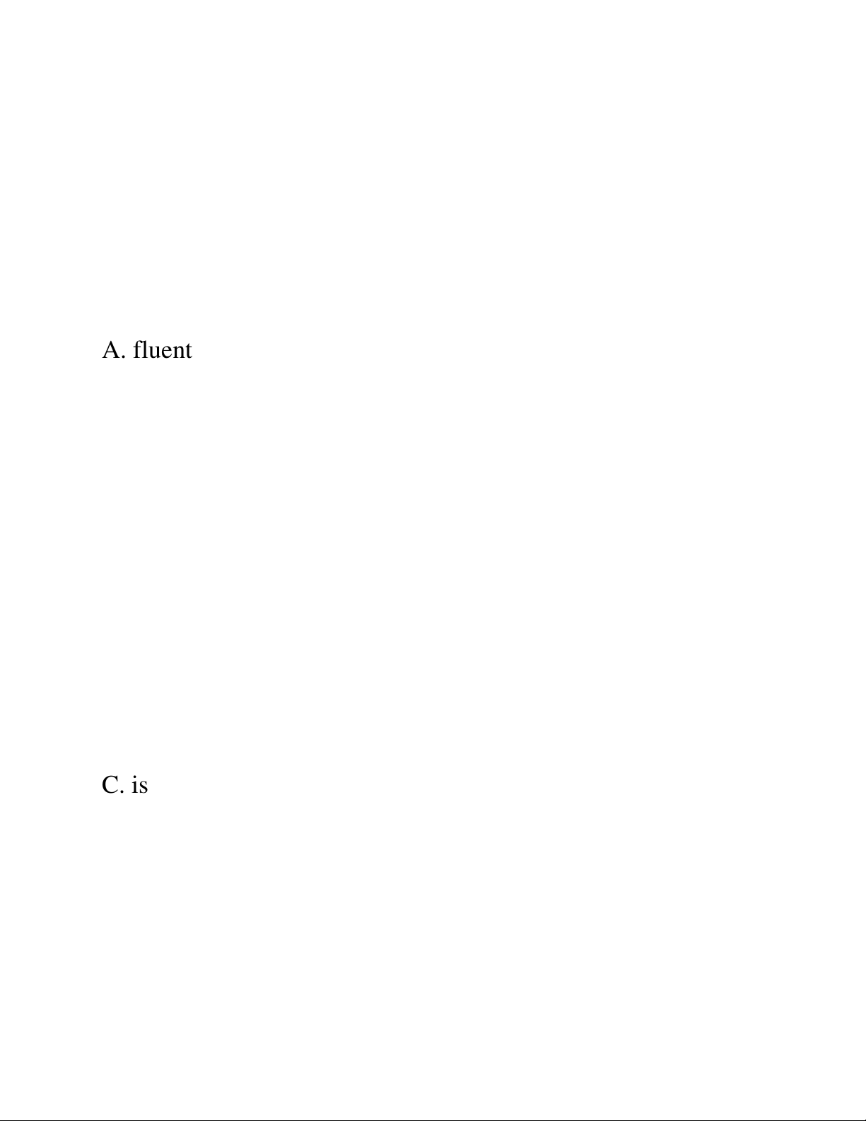 4. We need to hire someone who is _____ in both English and Japanese. A. fluent B. fluency C. fluently D. fluentness ⸻