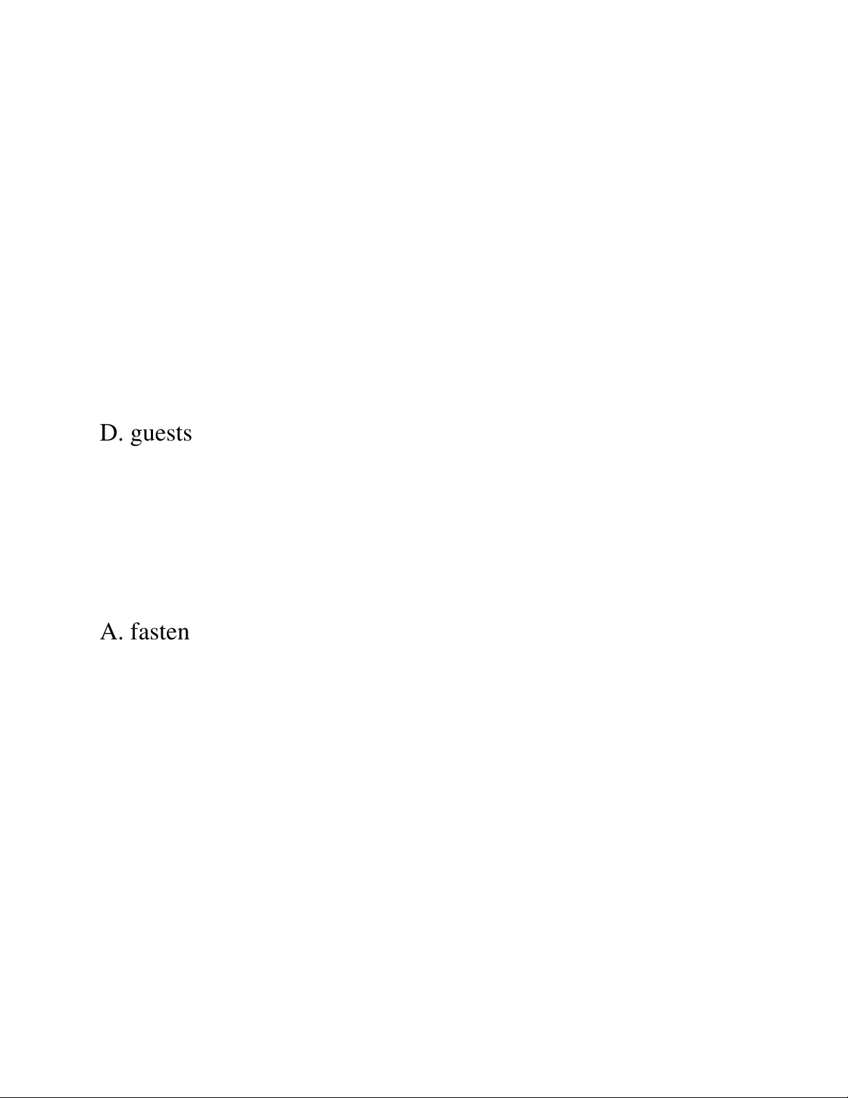 6. Please _____ your seatbelt while the vehicle is moving. A. fasten B. increase C. deliver D. involve ⸻