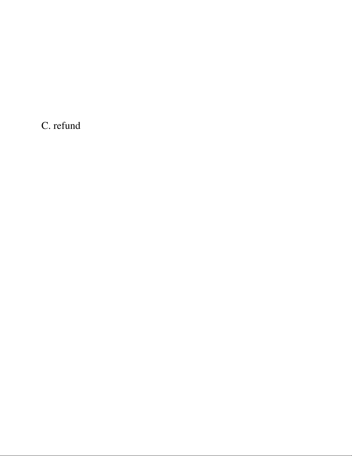 10. Customers who are not satisfied with the product may return it for a full _____. A. order B. receipt C. refund D. payment