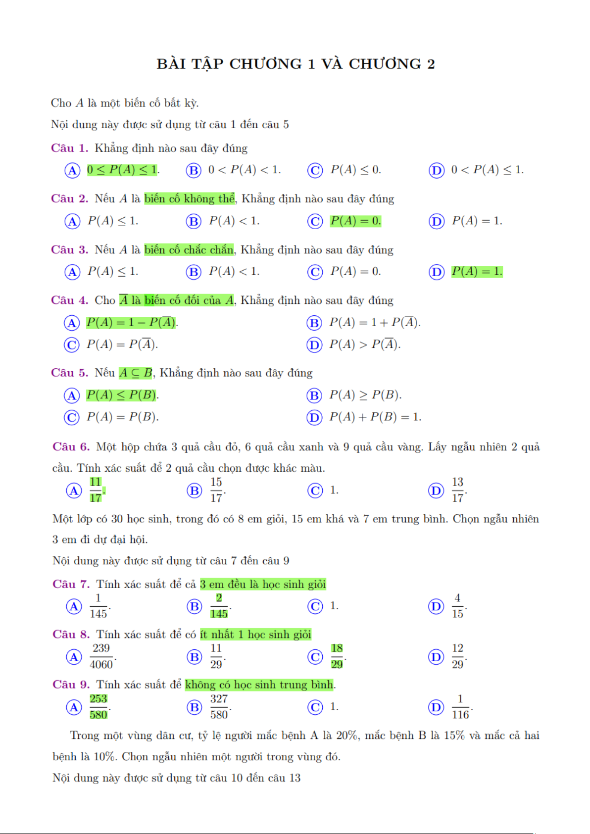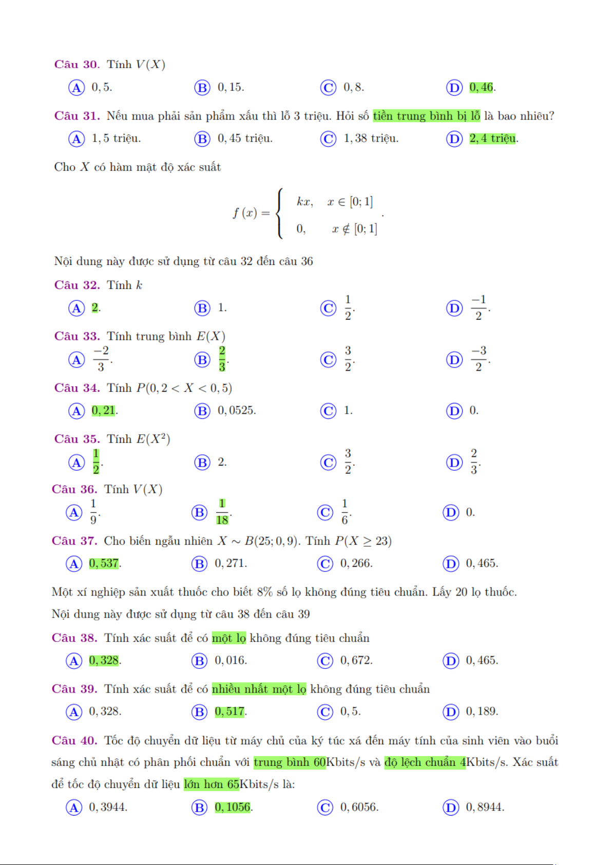 Môn: Lý Thuyết Xác Suất Và Thống Kê Toán (XSTK22) 5 tài liệu