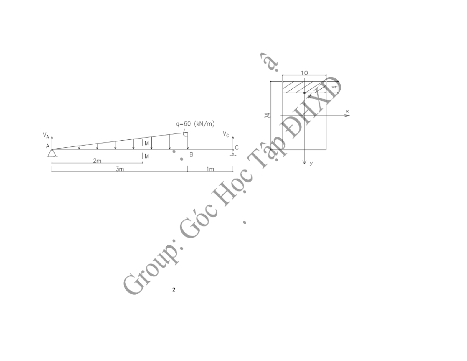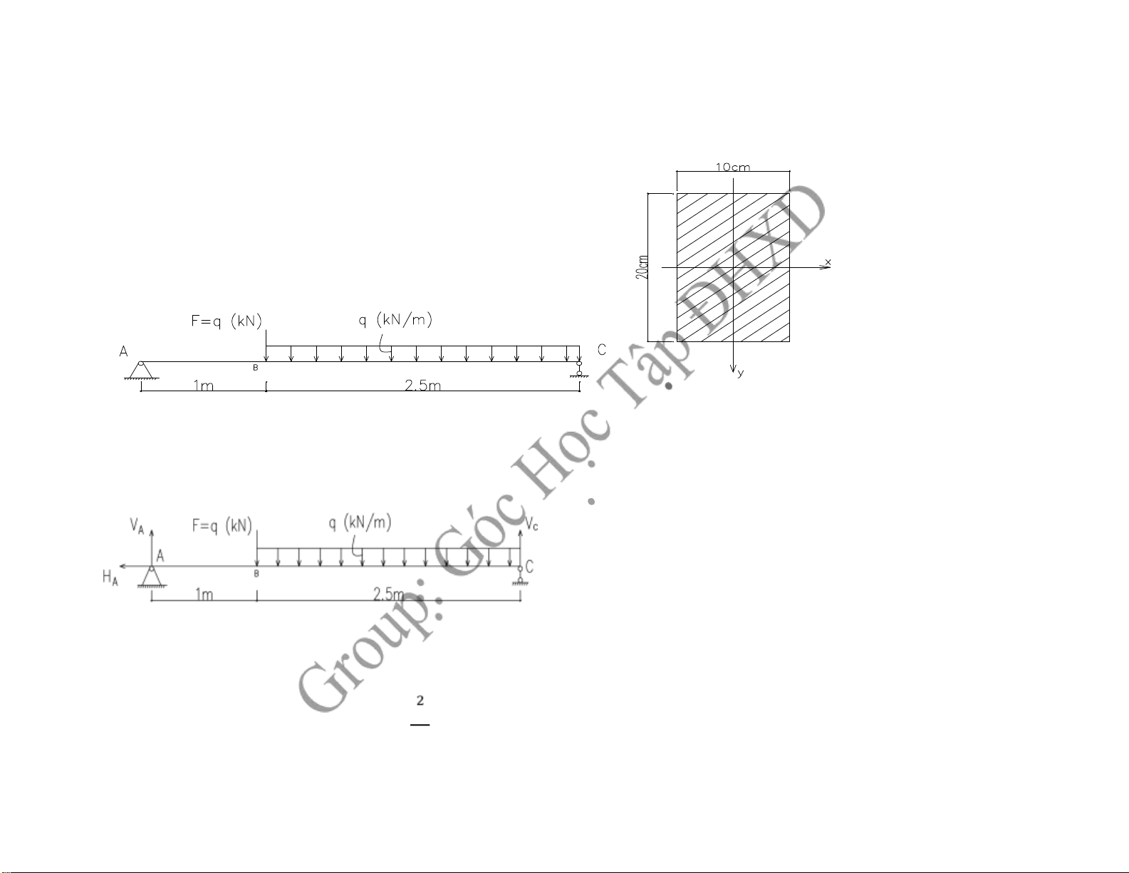 Câu 1 : Cho dầm có mặt cắt ngang là hình chữ nhật chịu lực như hình vẽ :