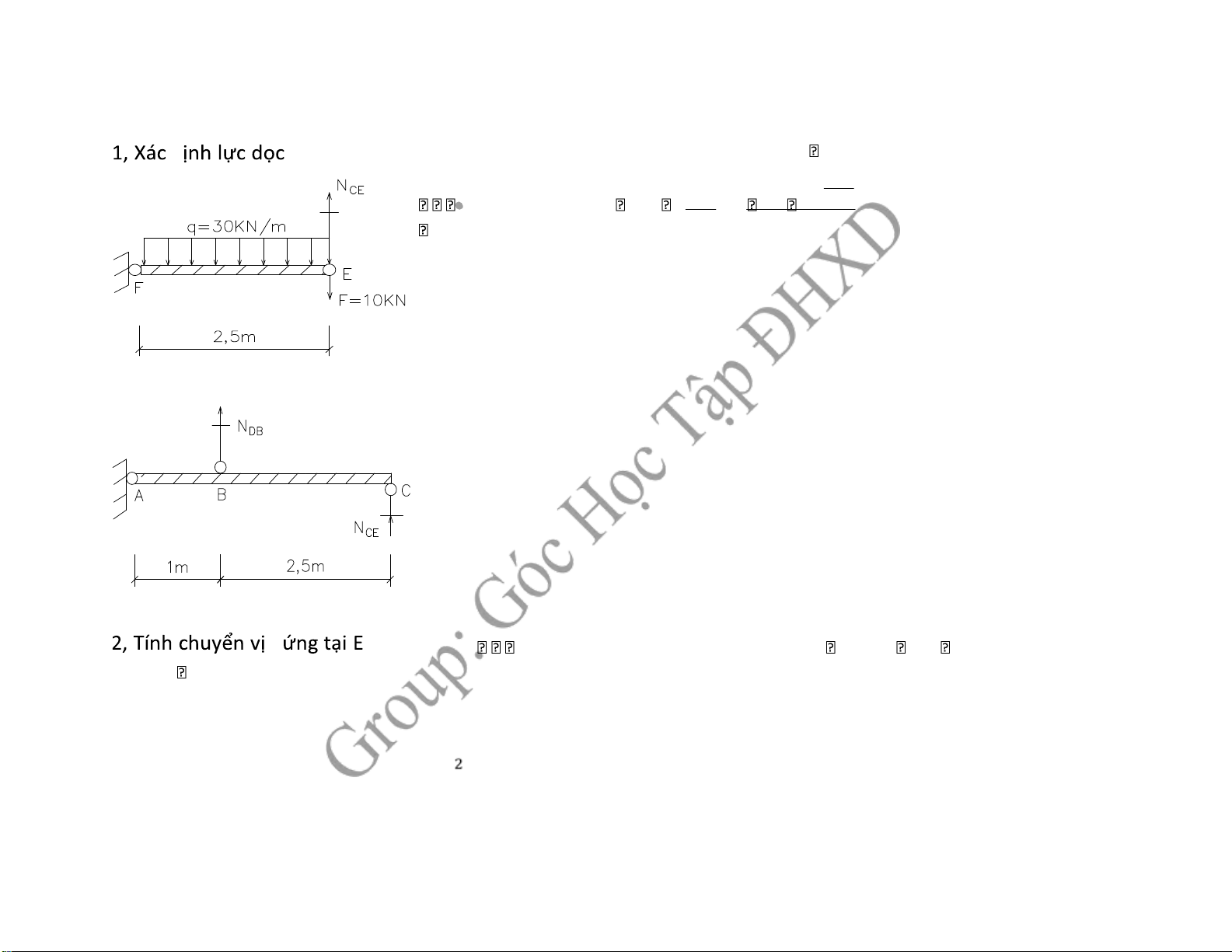 2, Tính chuyển vị tại E 2,52 m CE F 0 NZ .2,5 F.2,5 q. 2,52 NZCE 10.2,5 30. 2 47,5KN 2 2,5 m CE DB A 0 N DB.1 NZ .3,5 NZ 47,5.3,5 166,25KN EE' = L CE yc BB' 1 * CC ' 3,5.BB' CC' 3,5
