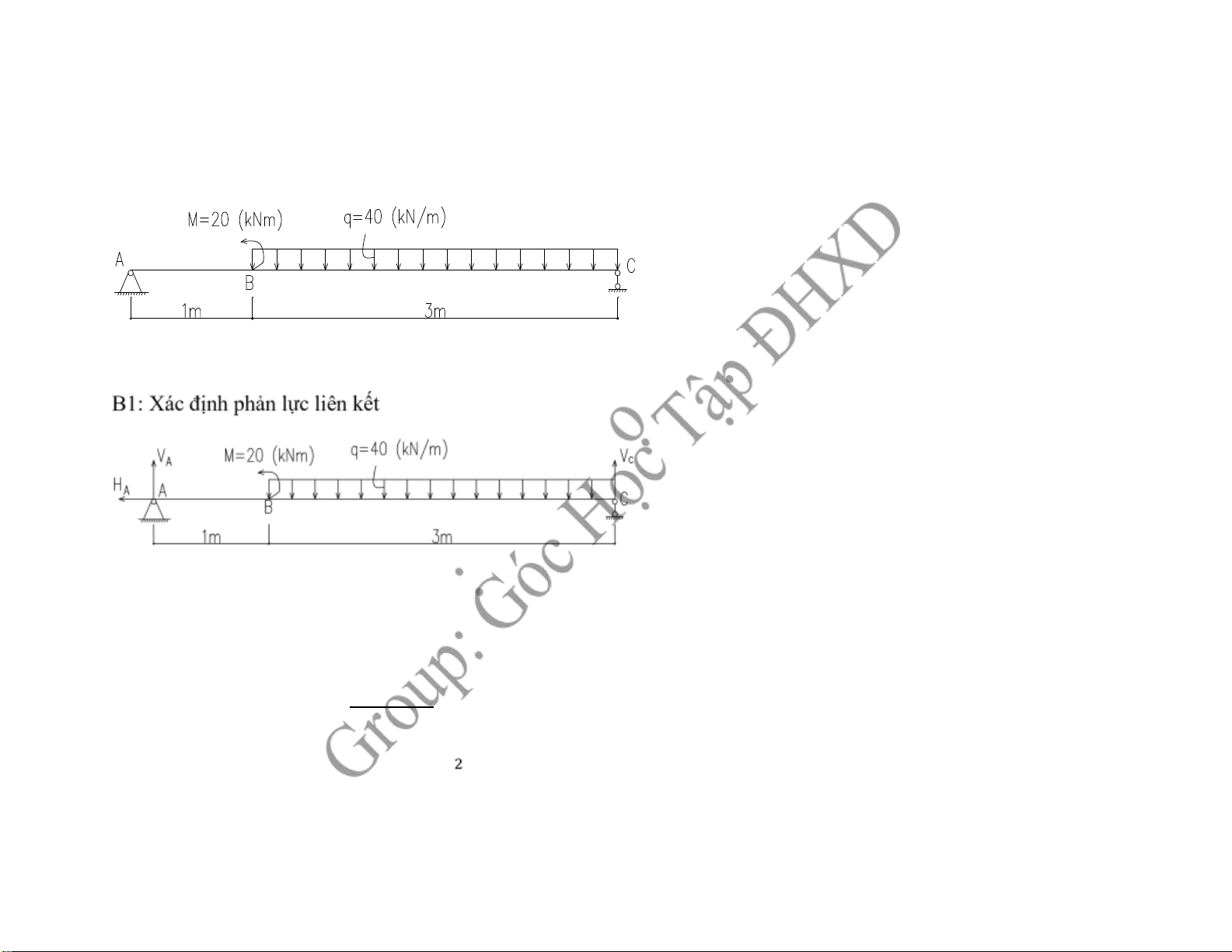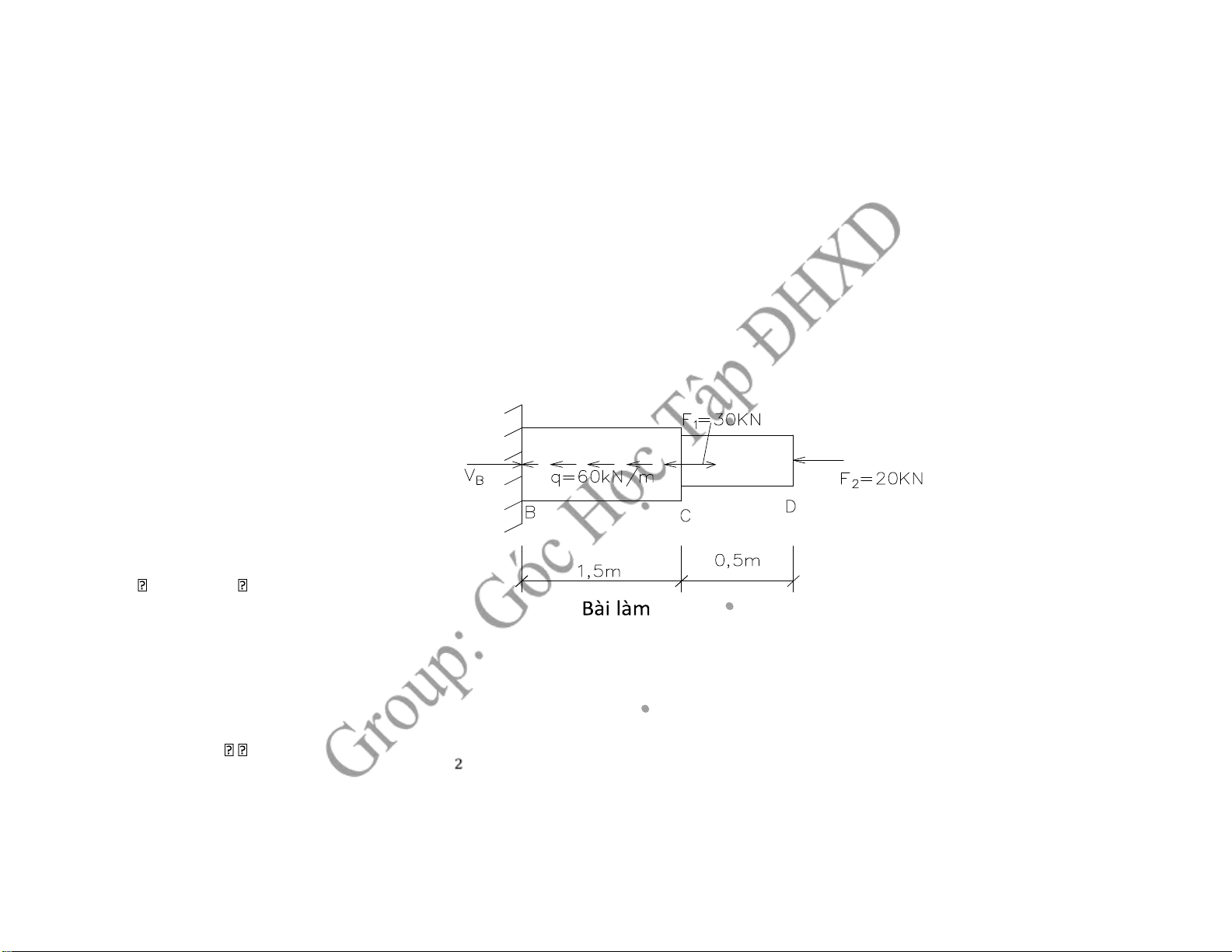 Vẽ biểu ồ nội lực cho dầm. BÀI LÀM: ∑ X= 0 → HA= 0 ∑ mA= 0 → M + VC.4 = q. 3. 2,25 → VC = . . , → VC = 70 (kN) ∑ Y= 0 → VA+ VC= q.3 → VA= 40.3 – 70 = 50 (kN) B2 : Chia oạn: 2 oạn