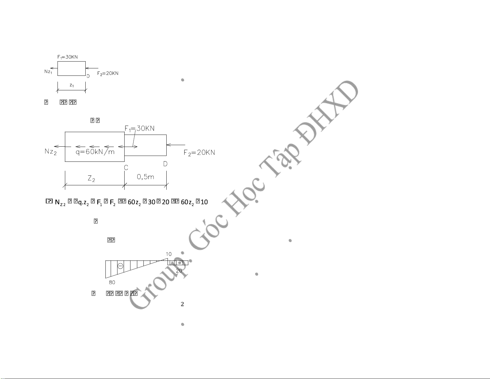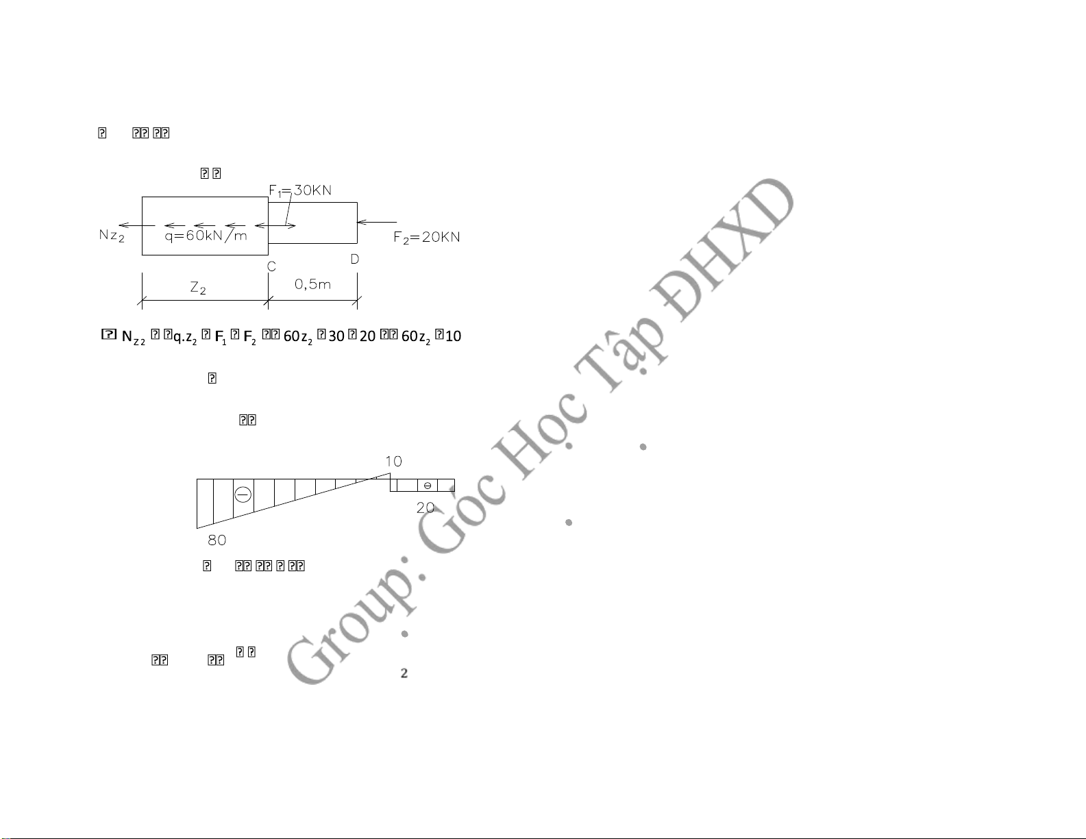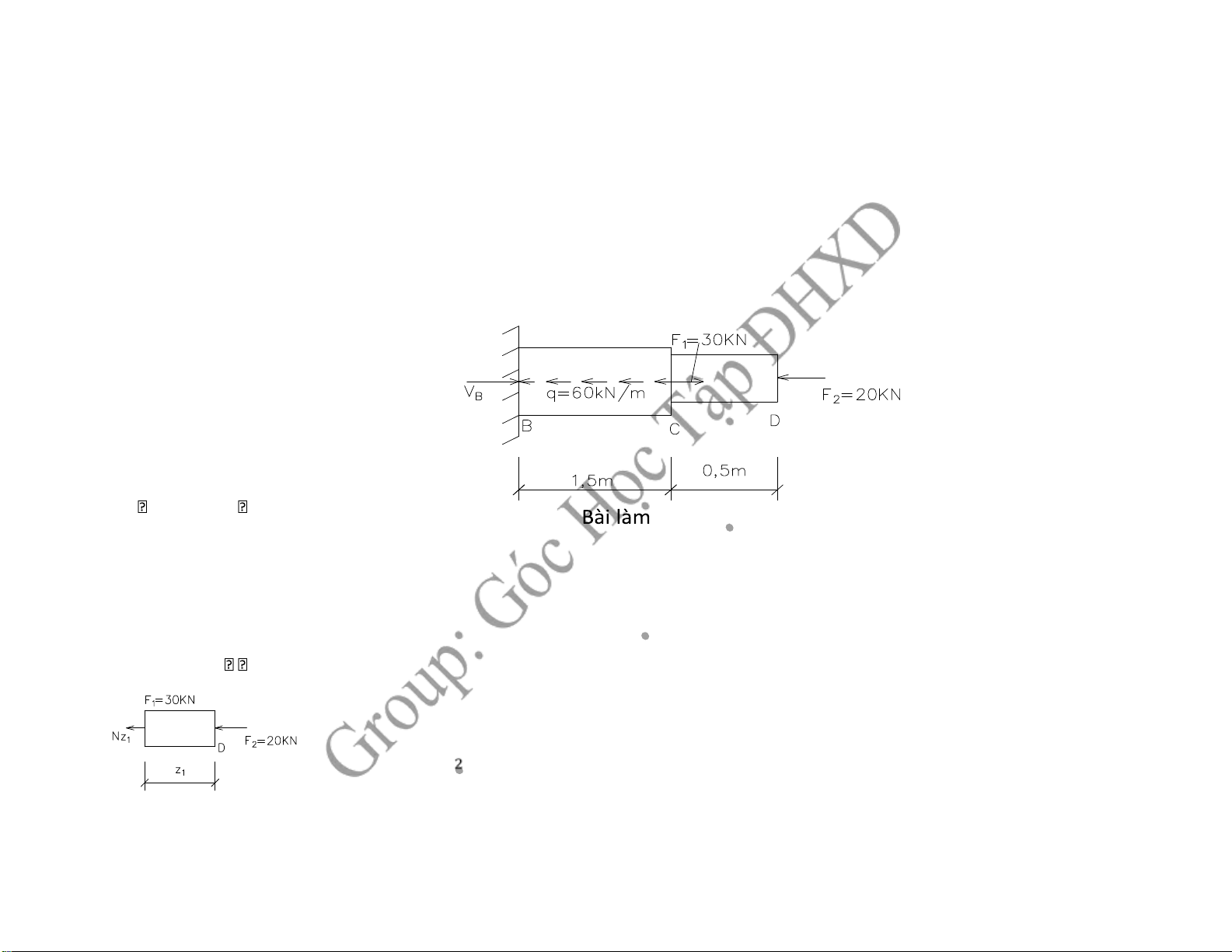 1, Vẽ biểu ồ ứng lực cho thanh -Chia oạn: 2 oạn +Đoạn CD:(0 z1 0,5 )m NZ1 F2 20KN