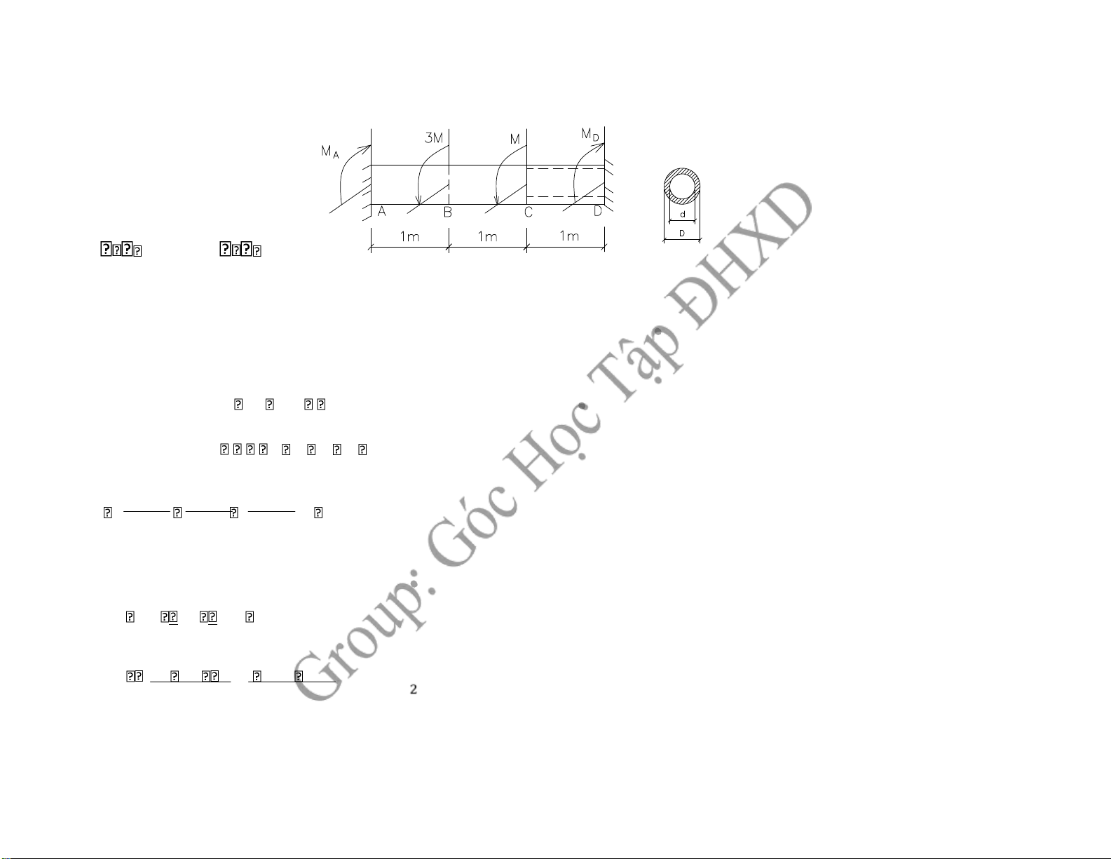 M 2906,74(kN cm. ) 29,0674(kN m. ) -Theo iều kiện cứng: max MZ G I. P AB 2,556M 3 8M 4,97.10 6433,982.8.10 CD 1,444M3 4,104.10 8M 4398,23.8.10 8 1 M 2. . 4,79.10 180 100 M 7287,4(kN cm.)