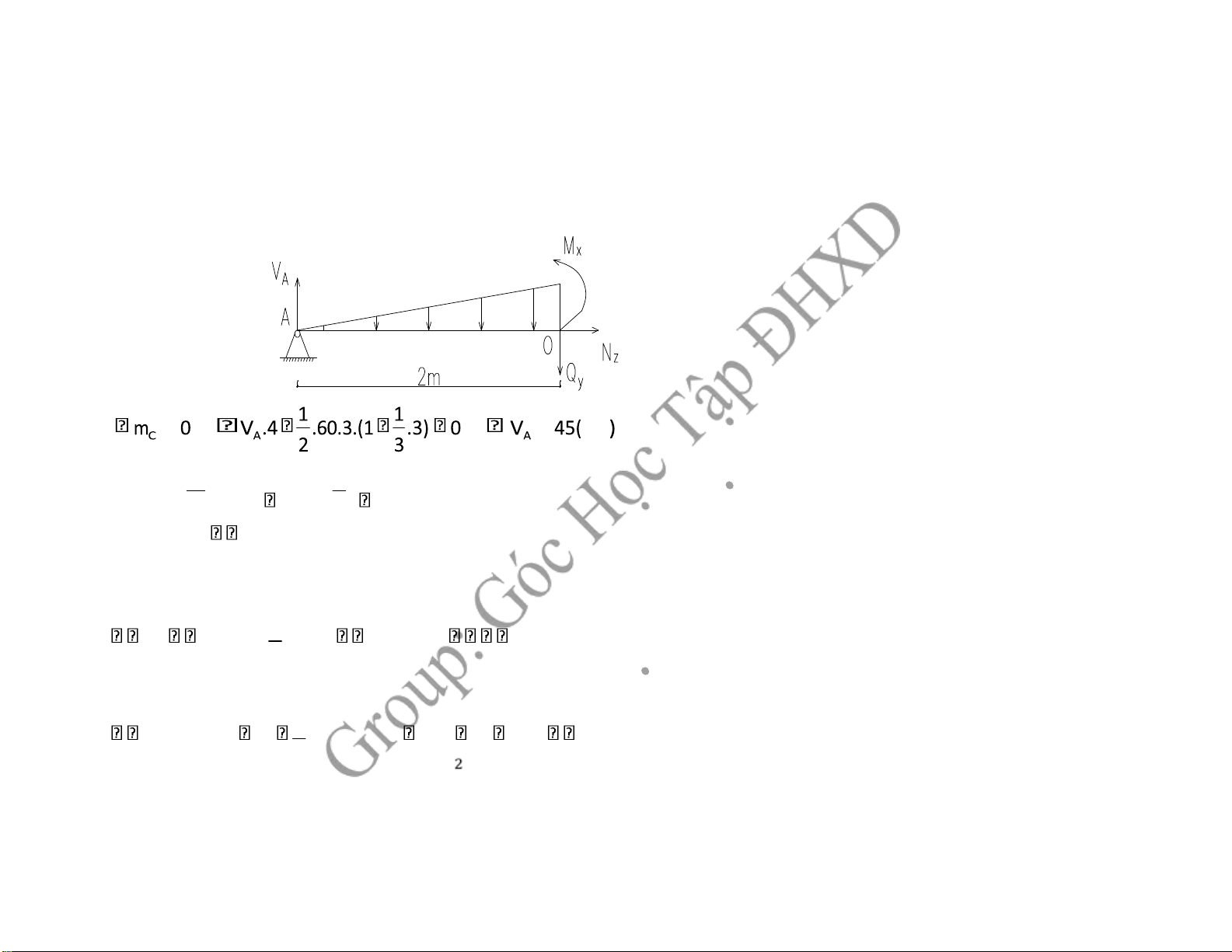 -Đoạn 2: BC ( z € [ 0 ; 3 ] ). Ta có q = const → Mx: hàm bậc 2; Qy hàm bậc 1 ∑ X= 0 → NZ = 0 ∑ Y= 0 → Qy = VA – q.z