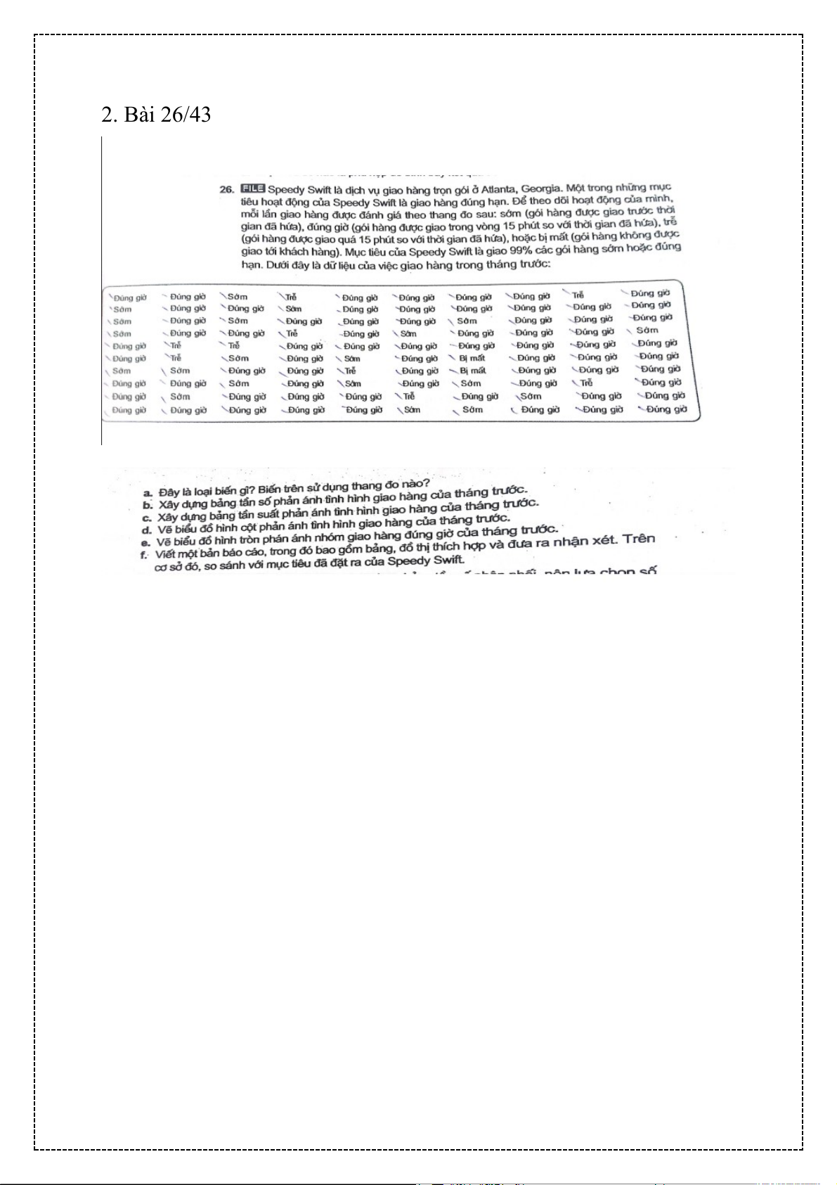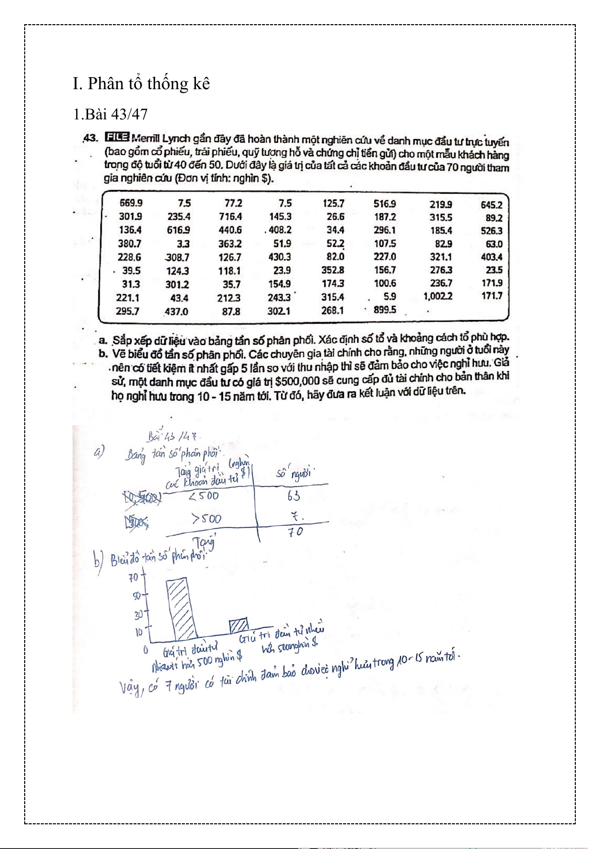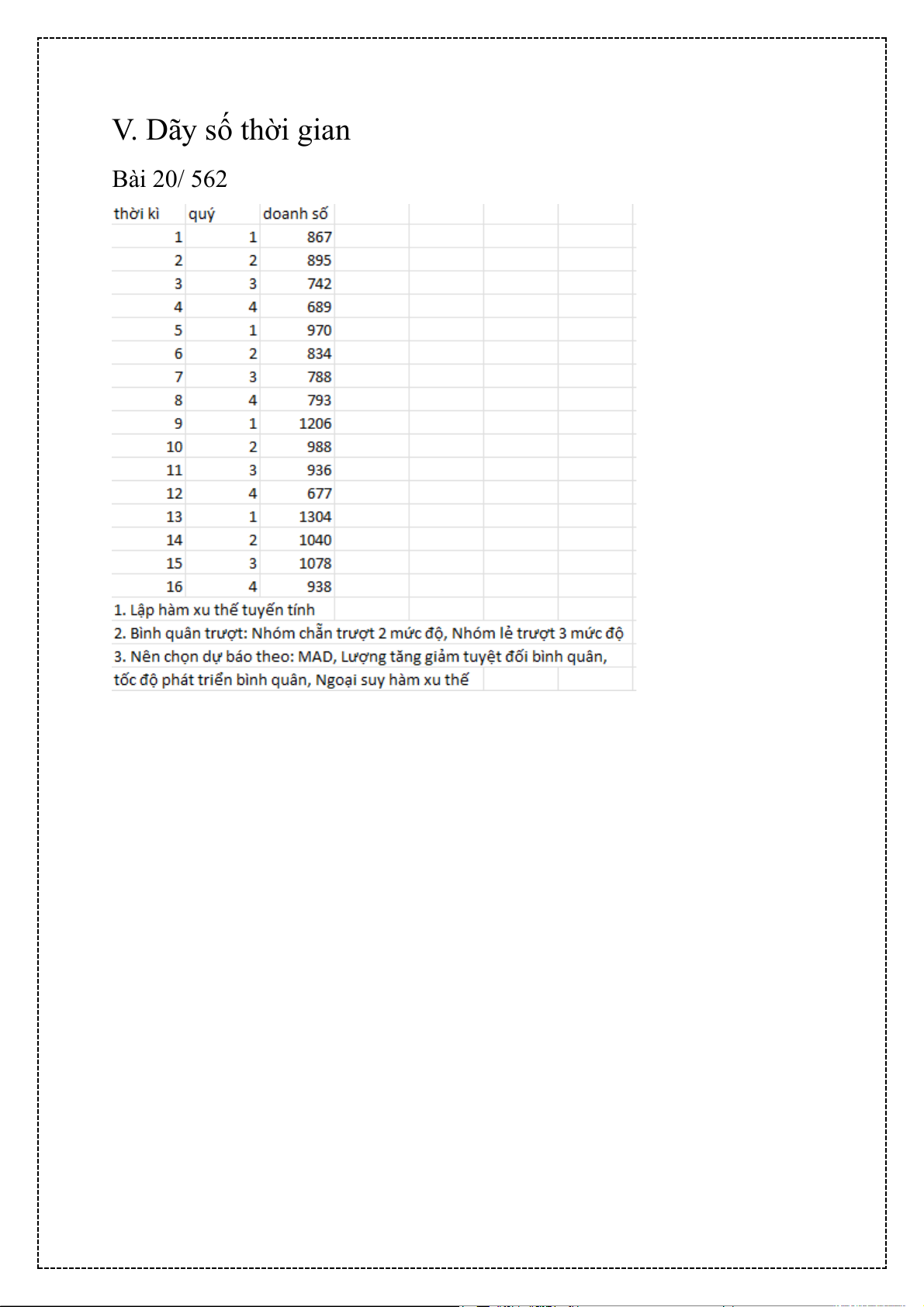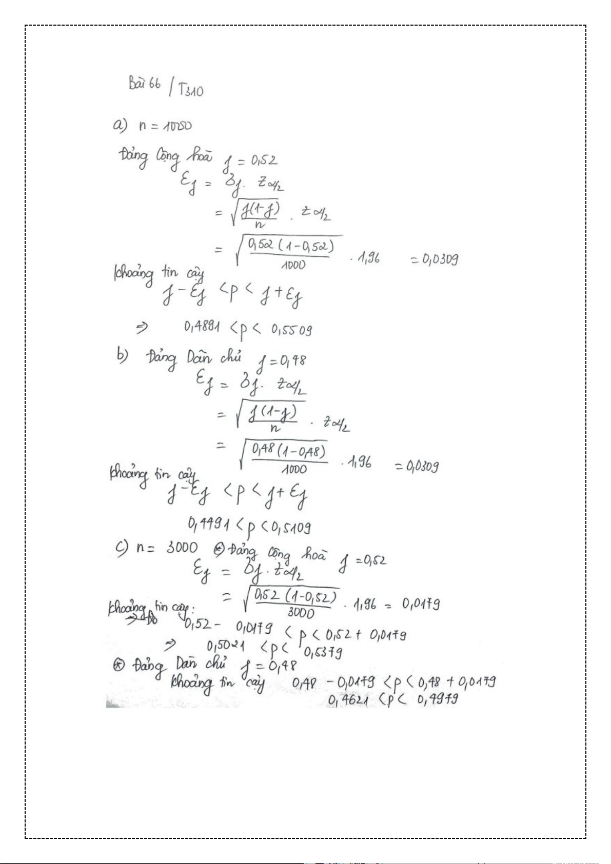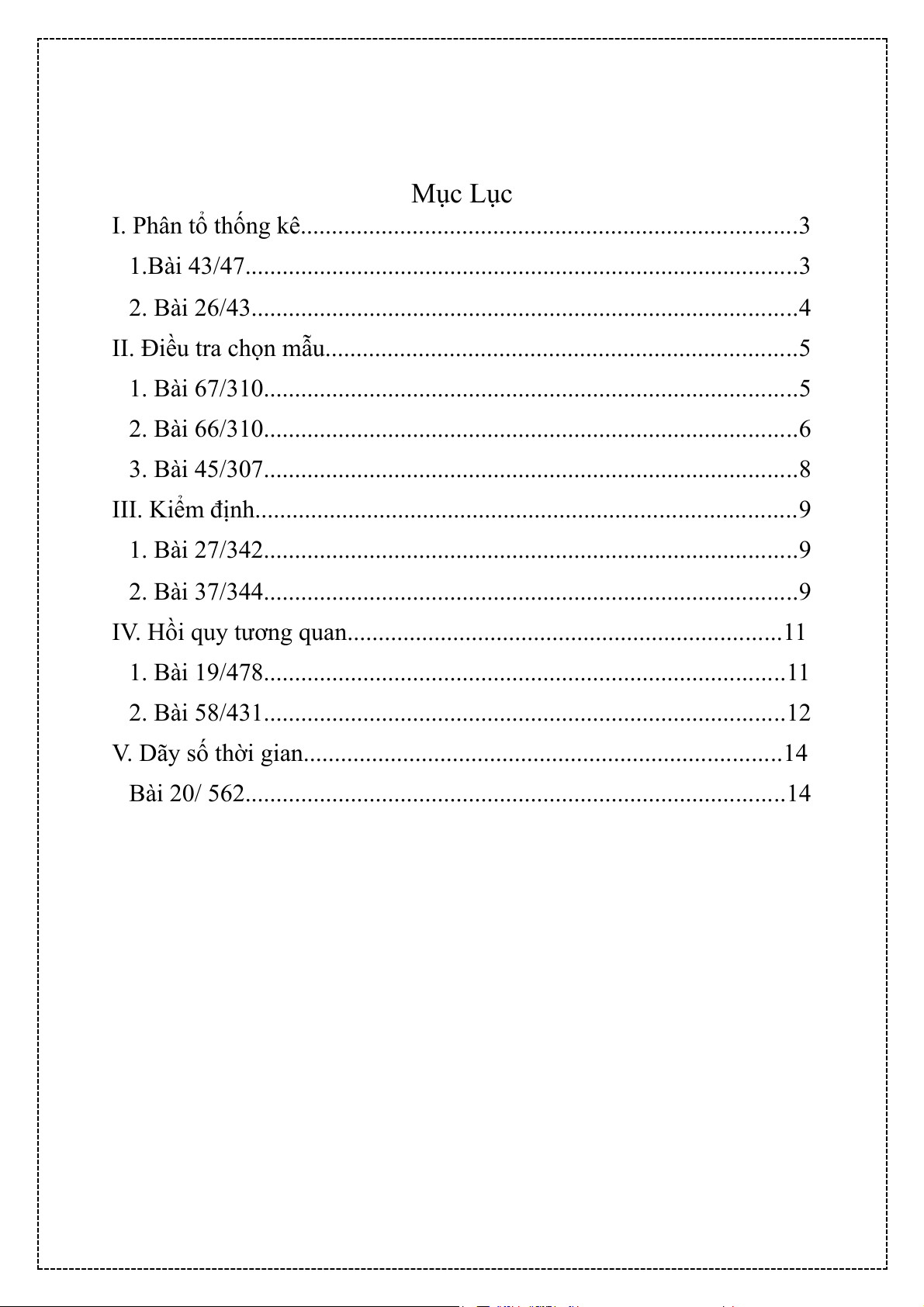 Bài 20/ 562.......................................................................................14 I. Phân tổ thống kê 1.Bài 43/47 2. Bài 26/43 II. Điều tra chọn mẫu 1. Bài 67/310 2. Bài 66/310 3. Bài 45/307 III. Kiểm định 1. Bài 27/342 2. Bài 37/344 IV. Hồi quy tương quan 1. Bài 19/478 2. Bài 58/431 V. Dãy số thời gian Bài 20/ 562
