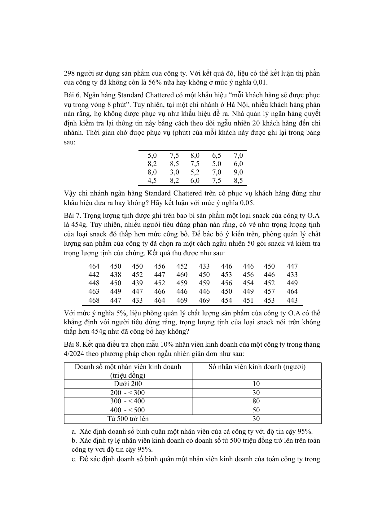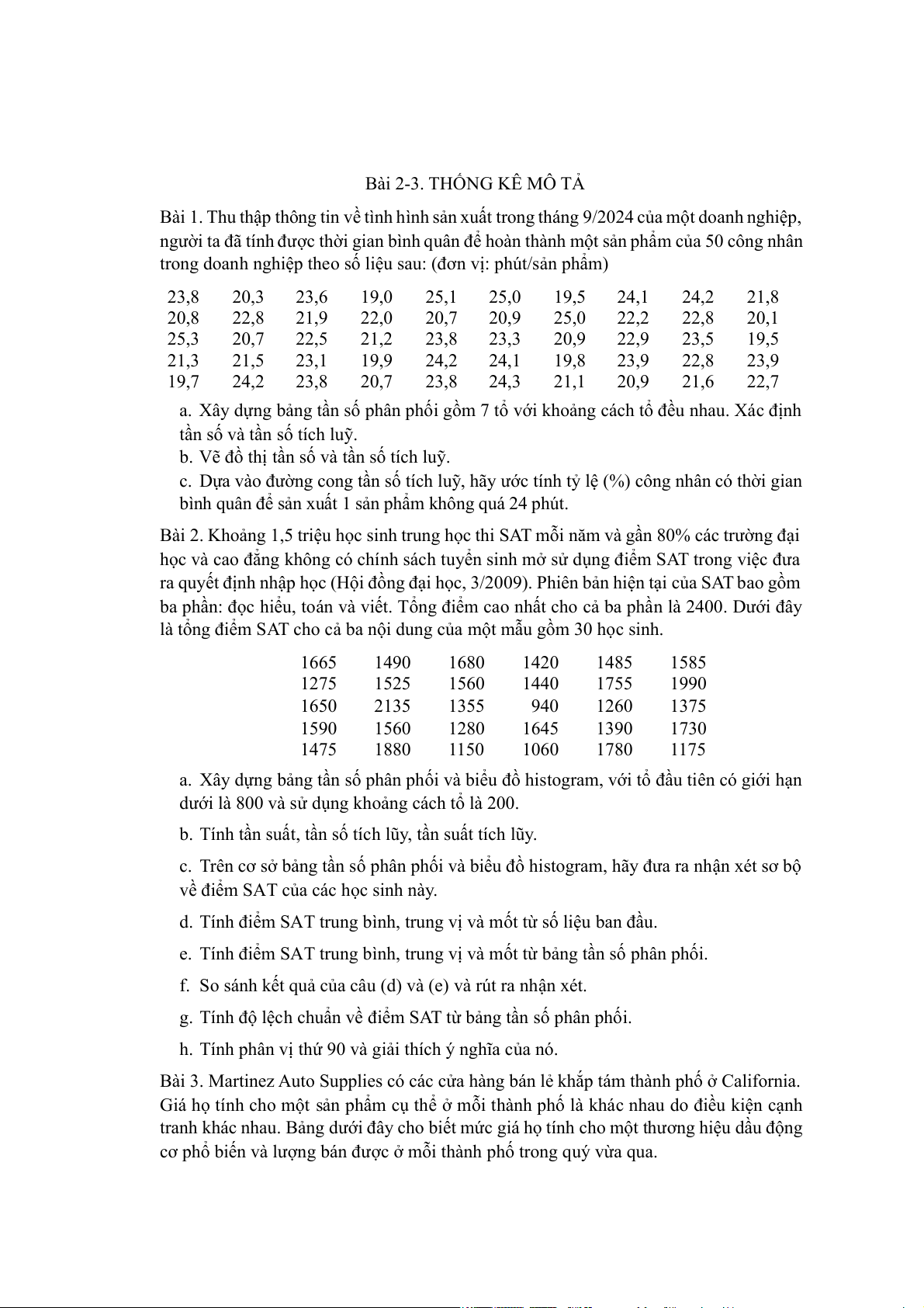 trong doanh nghiệp theo số liệu sau: (đơn vị: phút/sản phẩm) 23,8 20,3 23,6 19,0 25,1 25,0 19,5 24,1 24,2 21,8 20,8 22,8 21,9 22,0 20,7 20,9 25,0 22,2 22,8 20,1 25,3 20,7 22,5 21,2 23,8 23,3 20,9 22,9 23,5 19,5 21,3 21,5 23,1 19,9 24,2 24,1 19,8 23,9 22,8 23,9 19,7 24,2 23,8 20,7 23,8 24,3 21,1 20,9 21,6 22,7