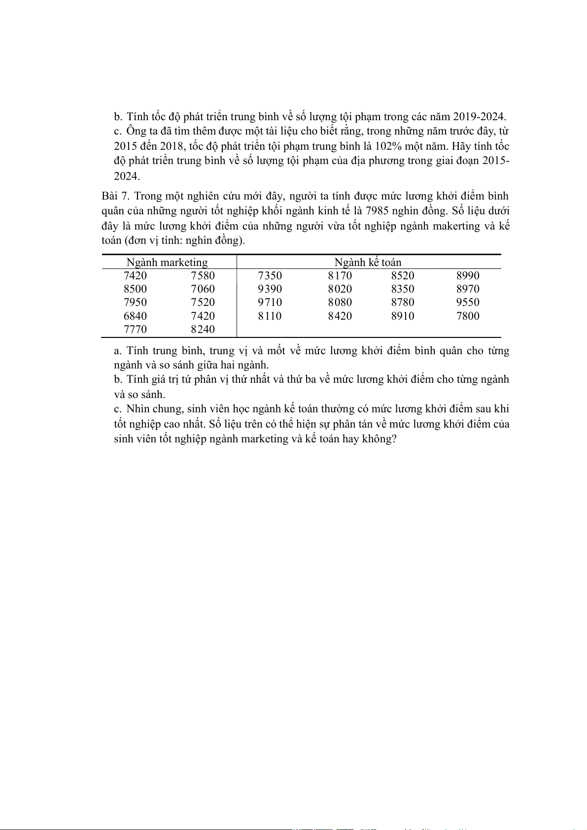 Bài 7. Trong một nghiên cứu mới đây, người ta tính được mức lương khởi điểm bình