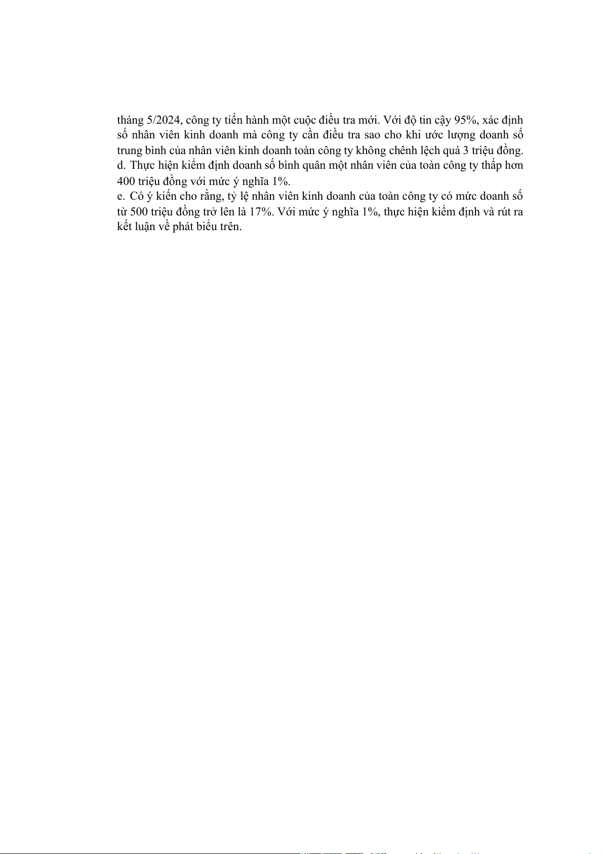 d. Tính năng suất lao động bình quân một tháng trong quý I của một công nhân.