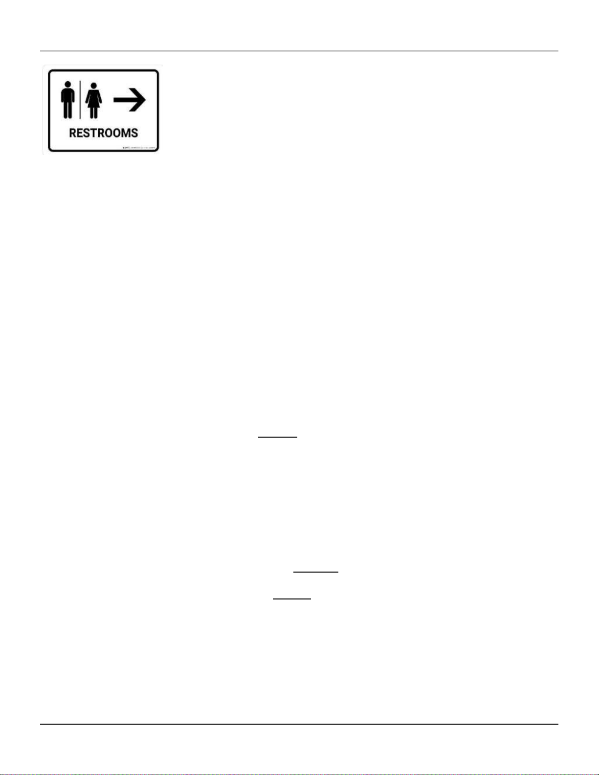 A. Restrooms are in the direction shown by this sign