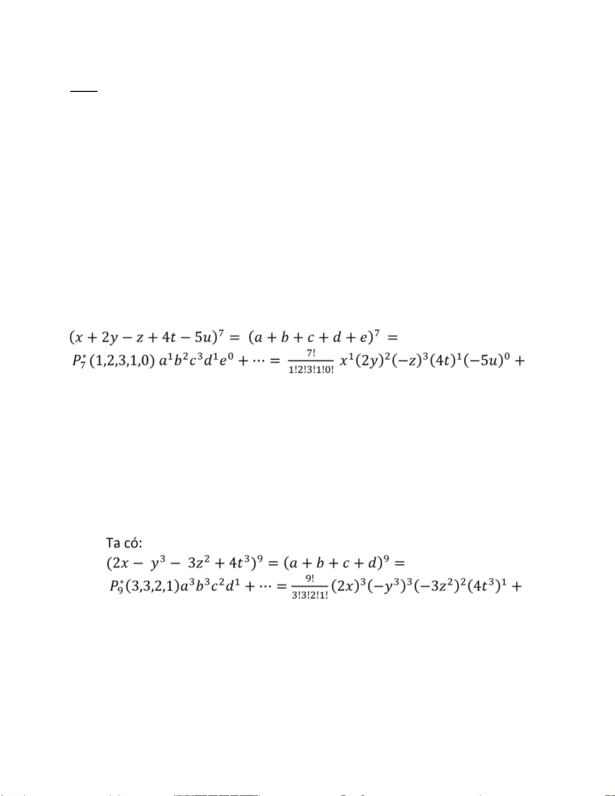 b) x3y9z4t3 khi khai triển (2x – y3 – 3z2 + 4t3)9 a) Đặt: a = x; b = 2y; c = - z; d = 4t; e = - 5u; Ta c: