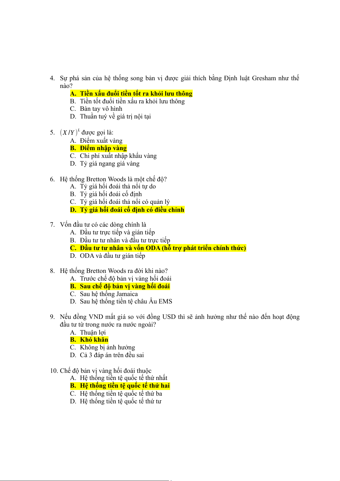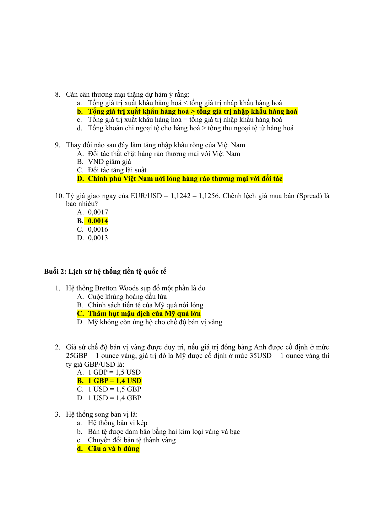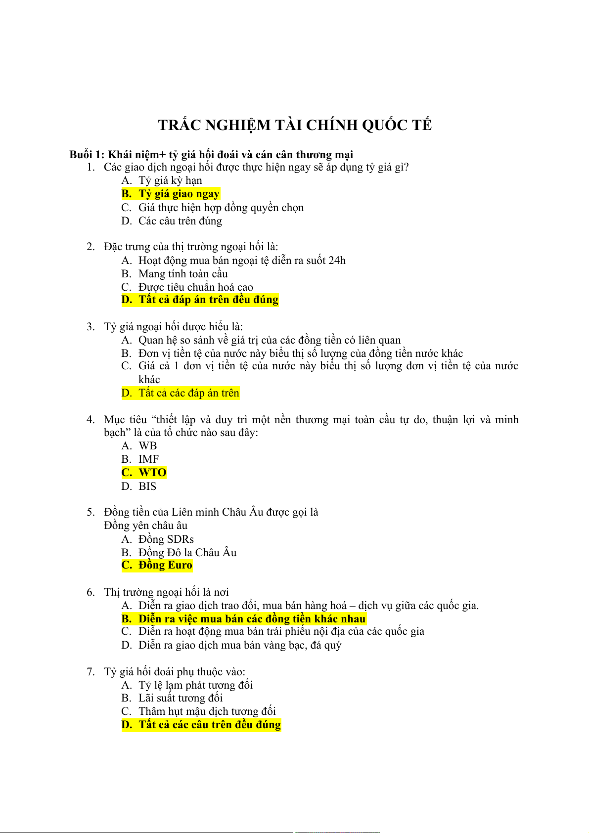 TRẮC NGHIỆM TÀI CHÍNH QUỐC TẾ
