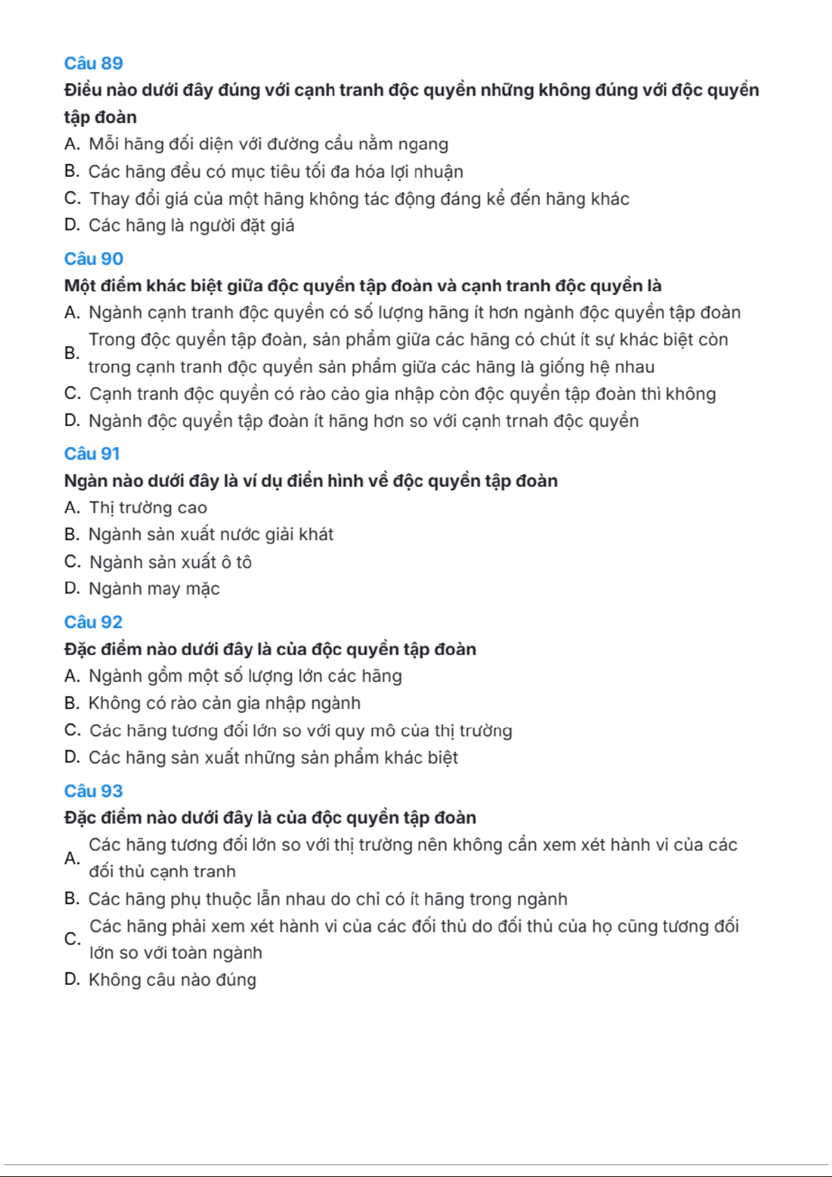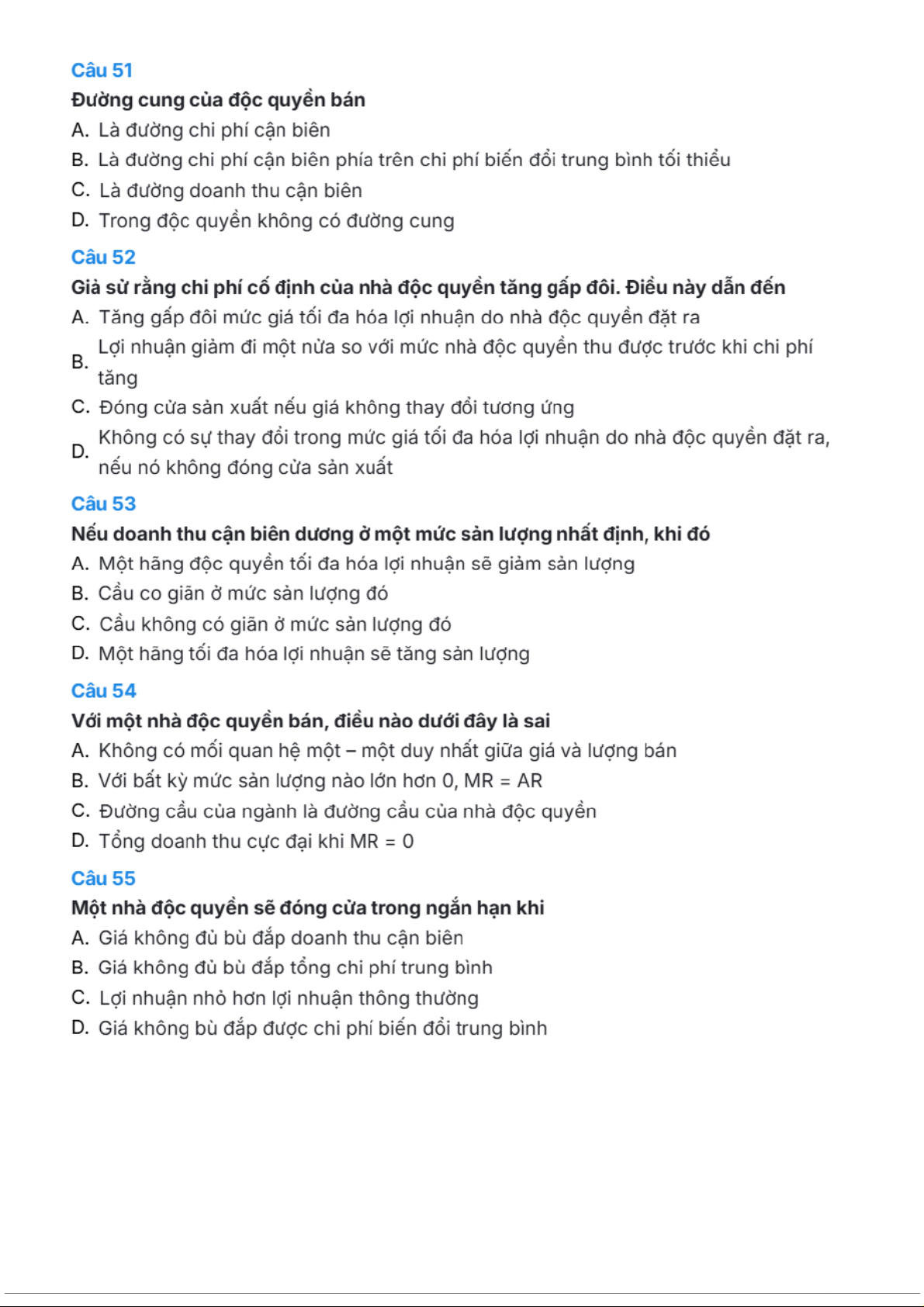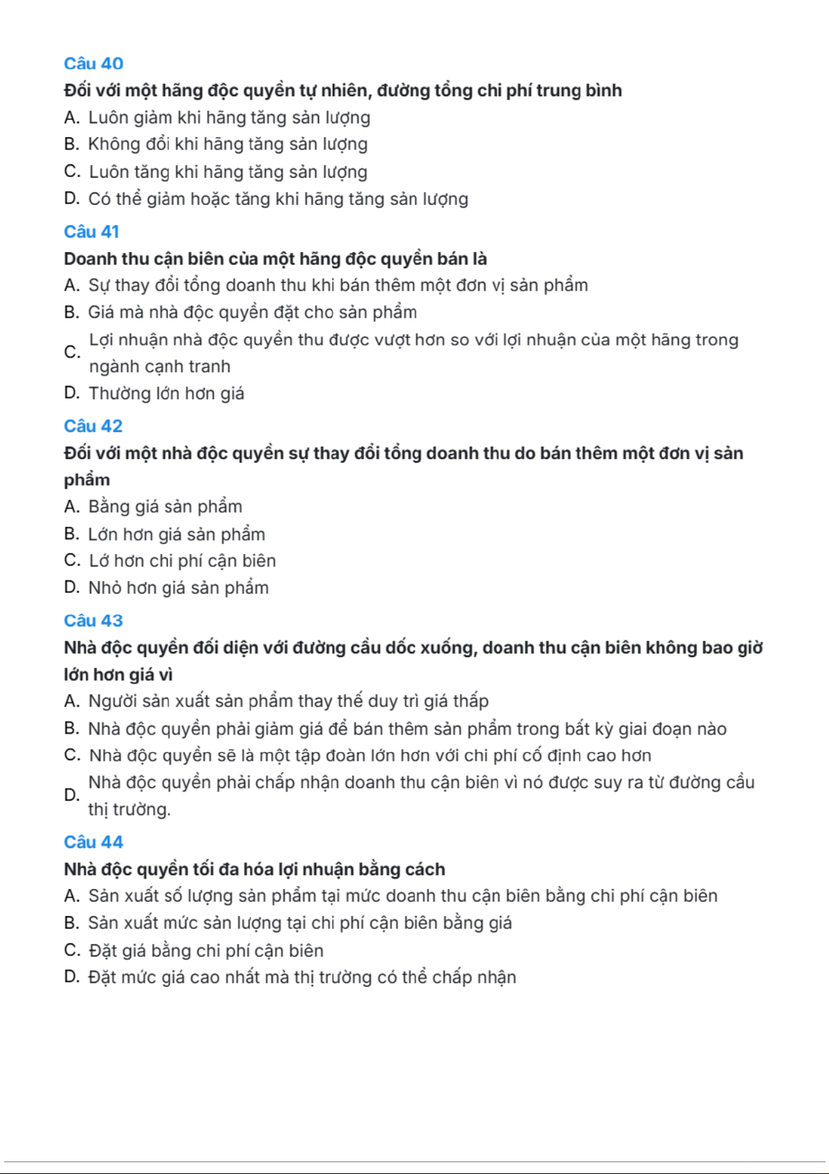 Bài tập phần 4: các cấu trúc thị trường môn Kinh tế vi mô | Trường Đại học Kinh Tế Quốc Dân