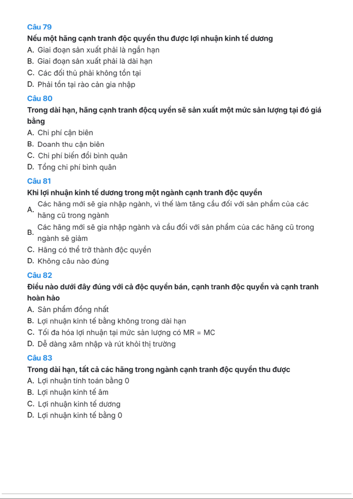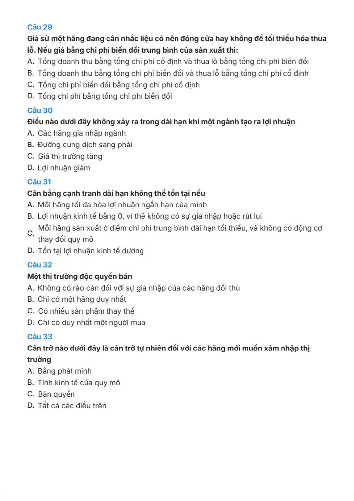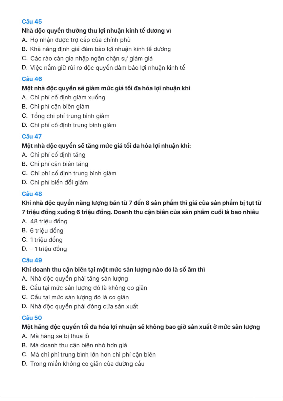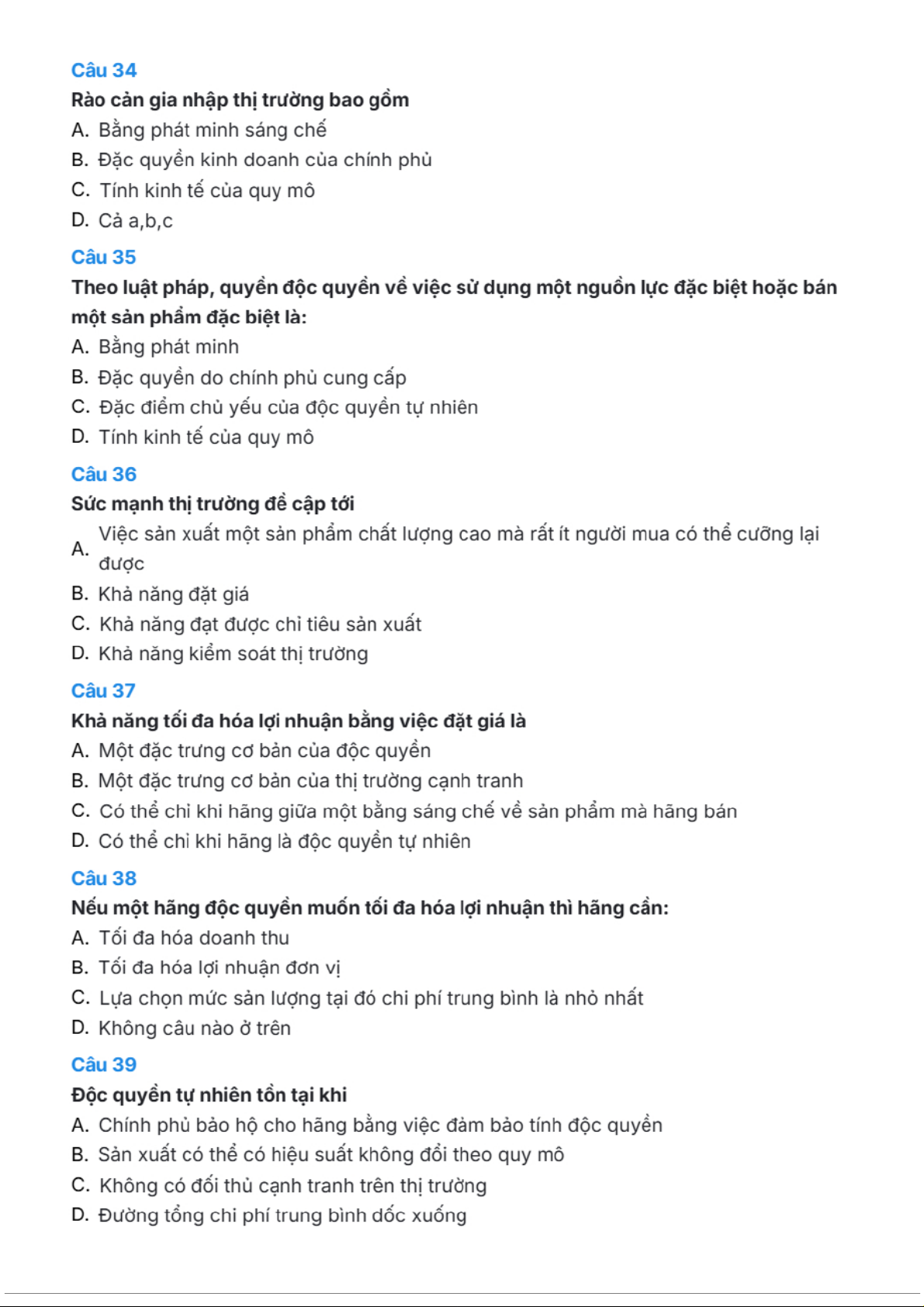 Bài tập phần 4: các cấu trúc thị trường môn Kinh tế vi mô | Trường Đại học Kinh Tế Quốc Dân