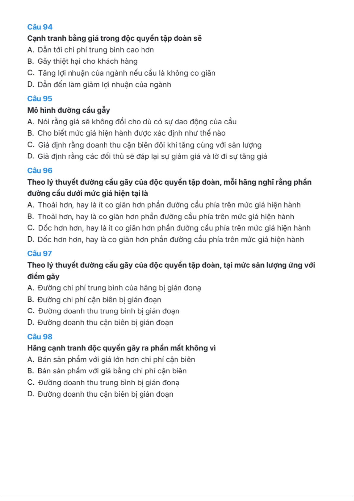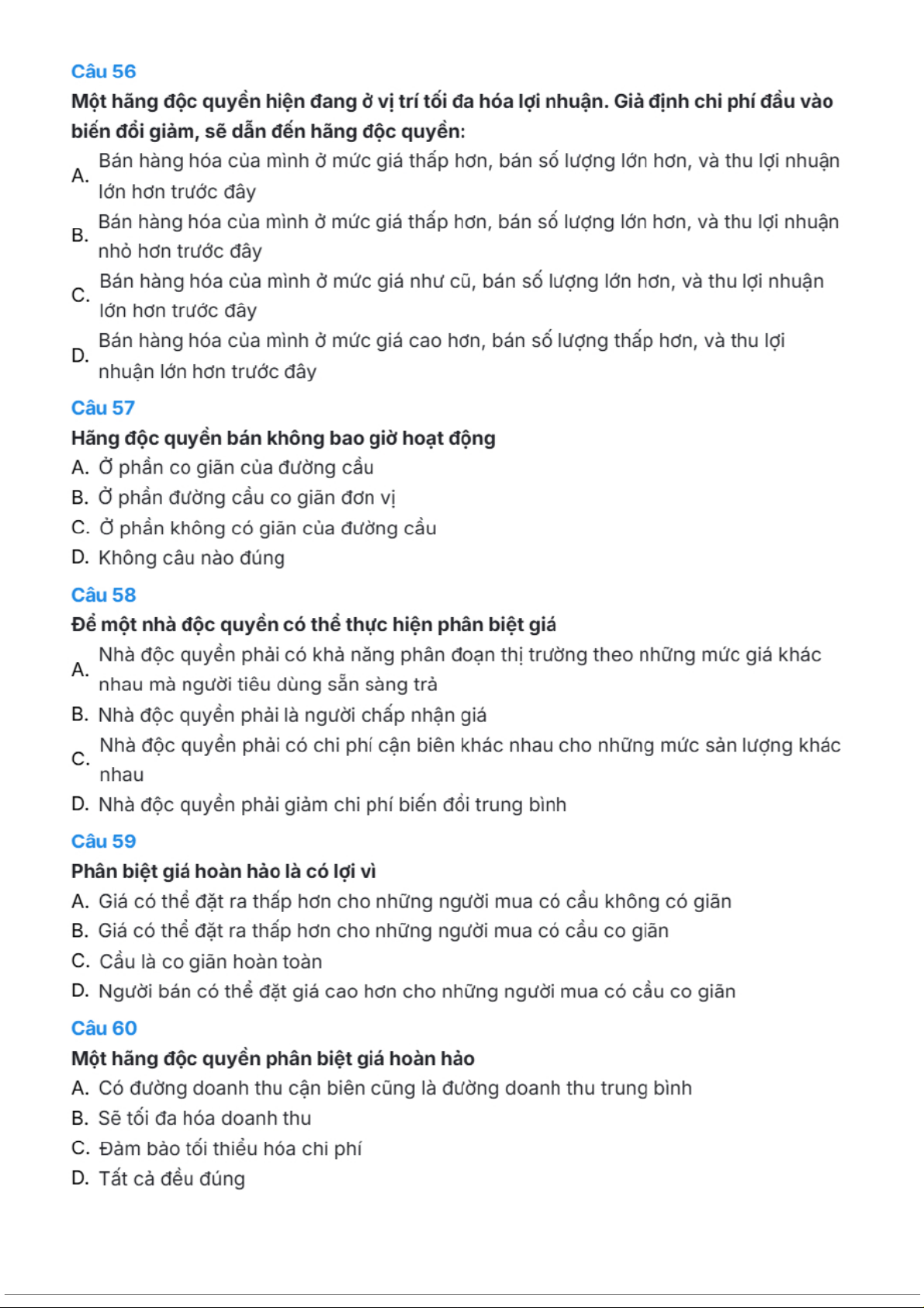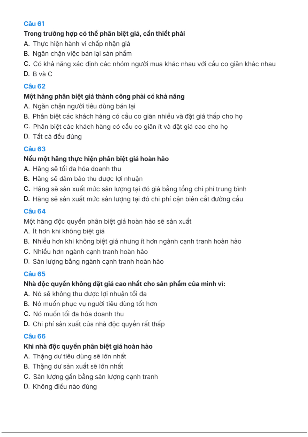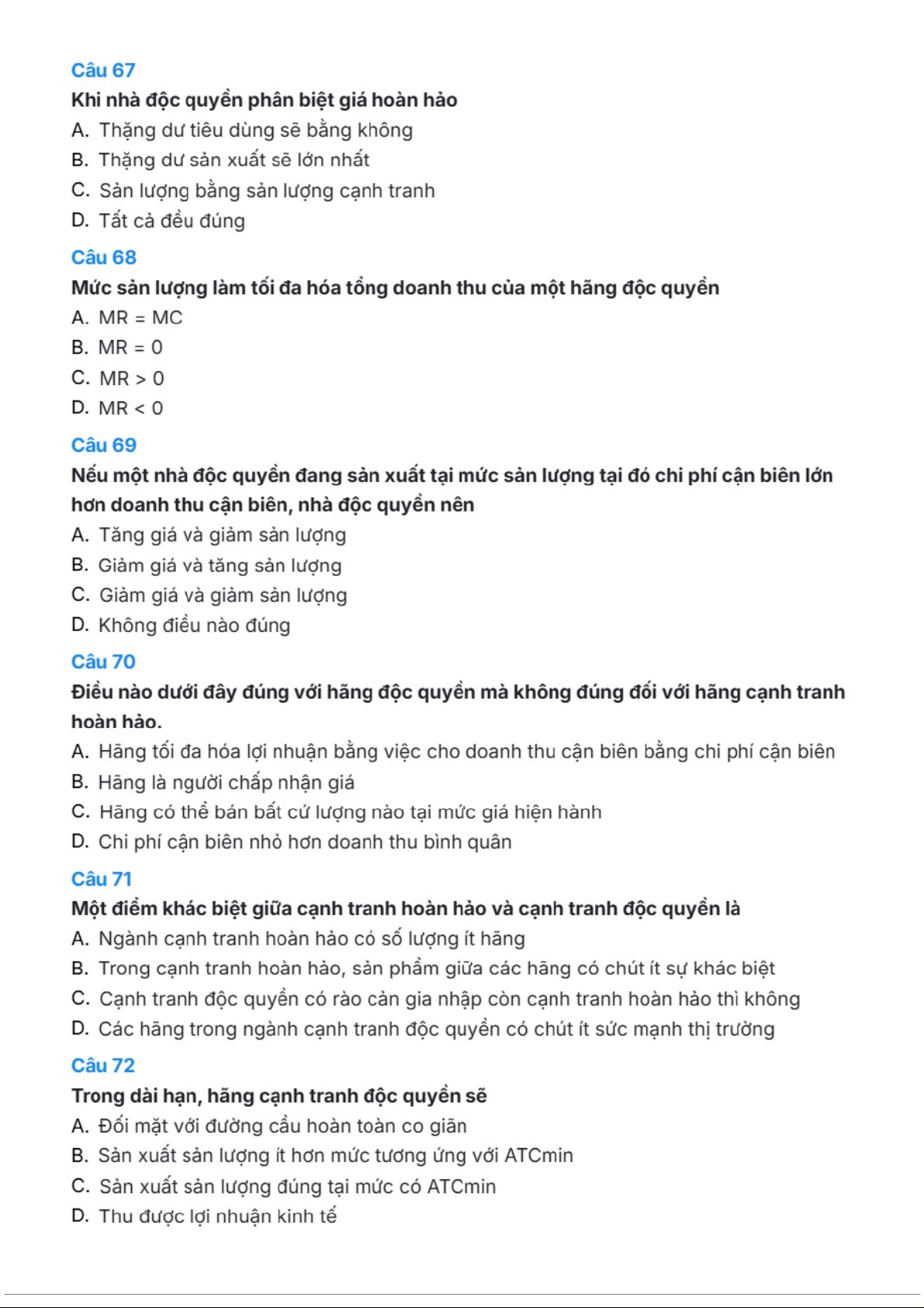 Tổng hợp câu hỏi trắc nghiệm theo chương ôn tập môn Kinh tế vi mô | Trường Đại học Kinh Tế Quốc Dân