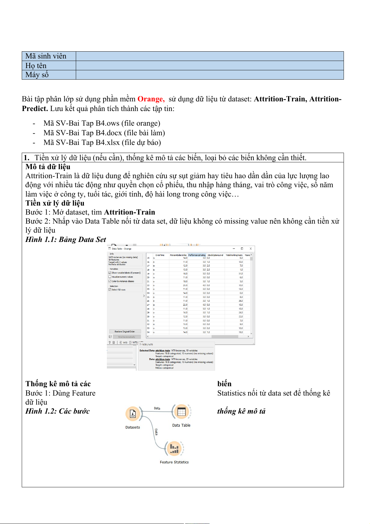 Bài tập phân lớp sử dụng phần mềm Orange, sử dụng dữ liệu từ dataset: Attrition-Train, Attrition-