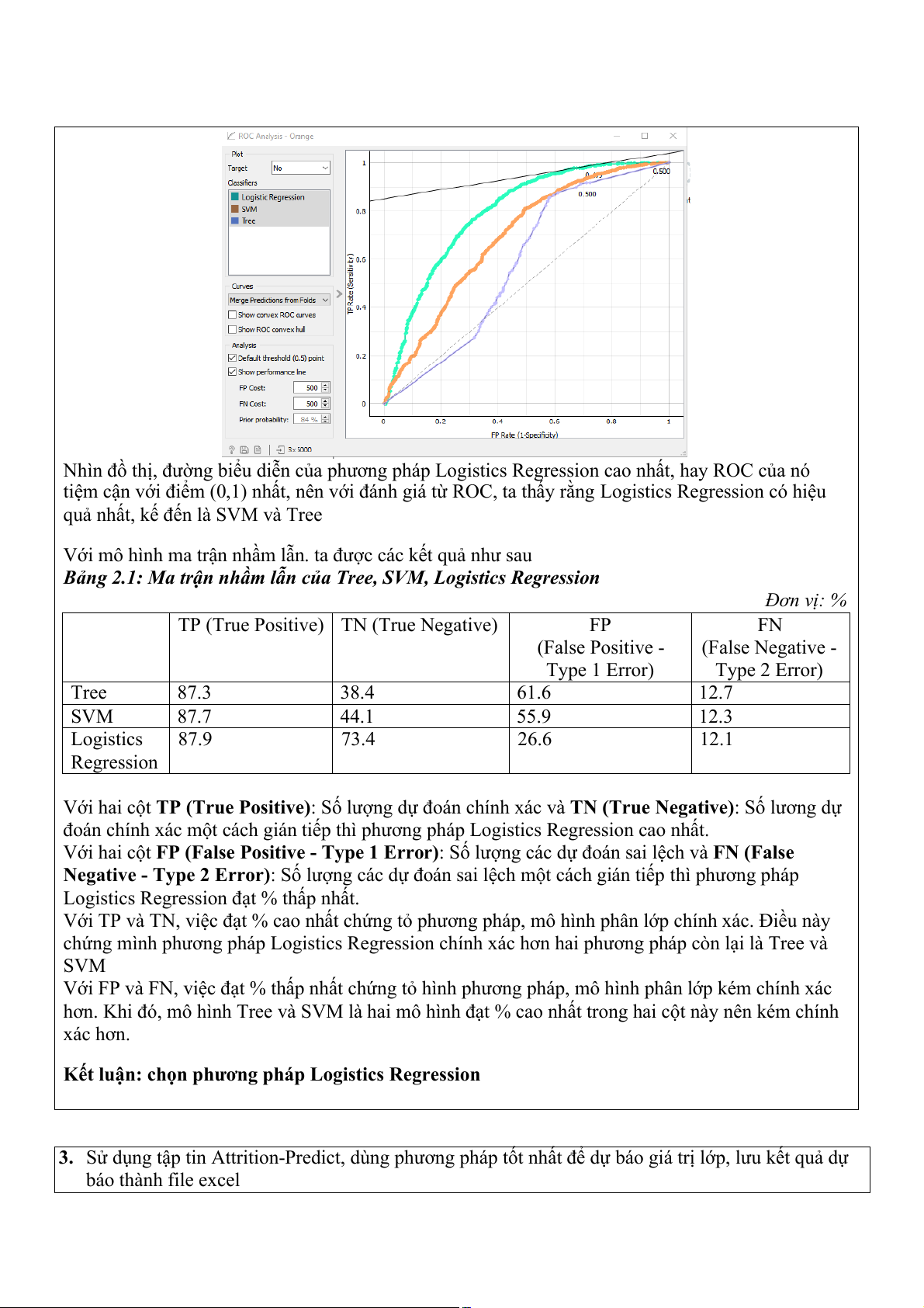 3. Sử dụng tập tin Attrition-Predict, dùng phương pháp tốt nhất để dự báo giá trị lớp, lưu kết quả dự báo thành file excel