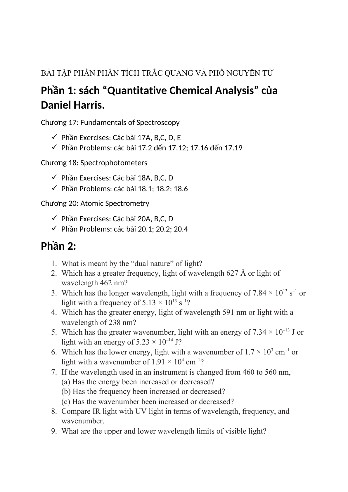Phần 1: sách “Quantitative Chemical Analysis” của Daniel Harris.