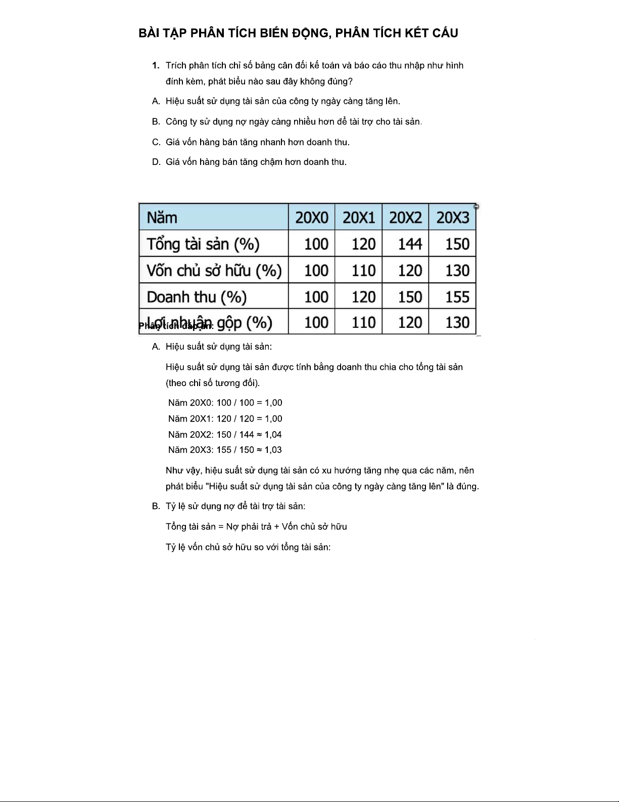 BÀI TẬP PHÂN TÍCH BIẾN ĐỘNG VÀ KẾT CẤU TÀI CHÍNH 20X0-20X3