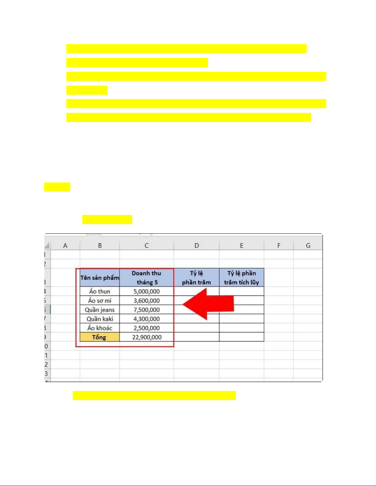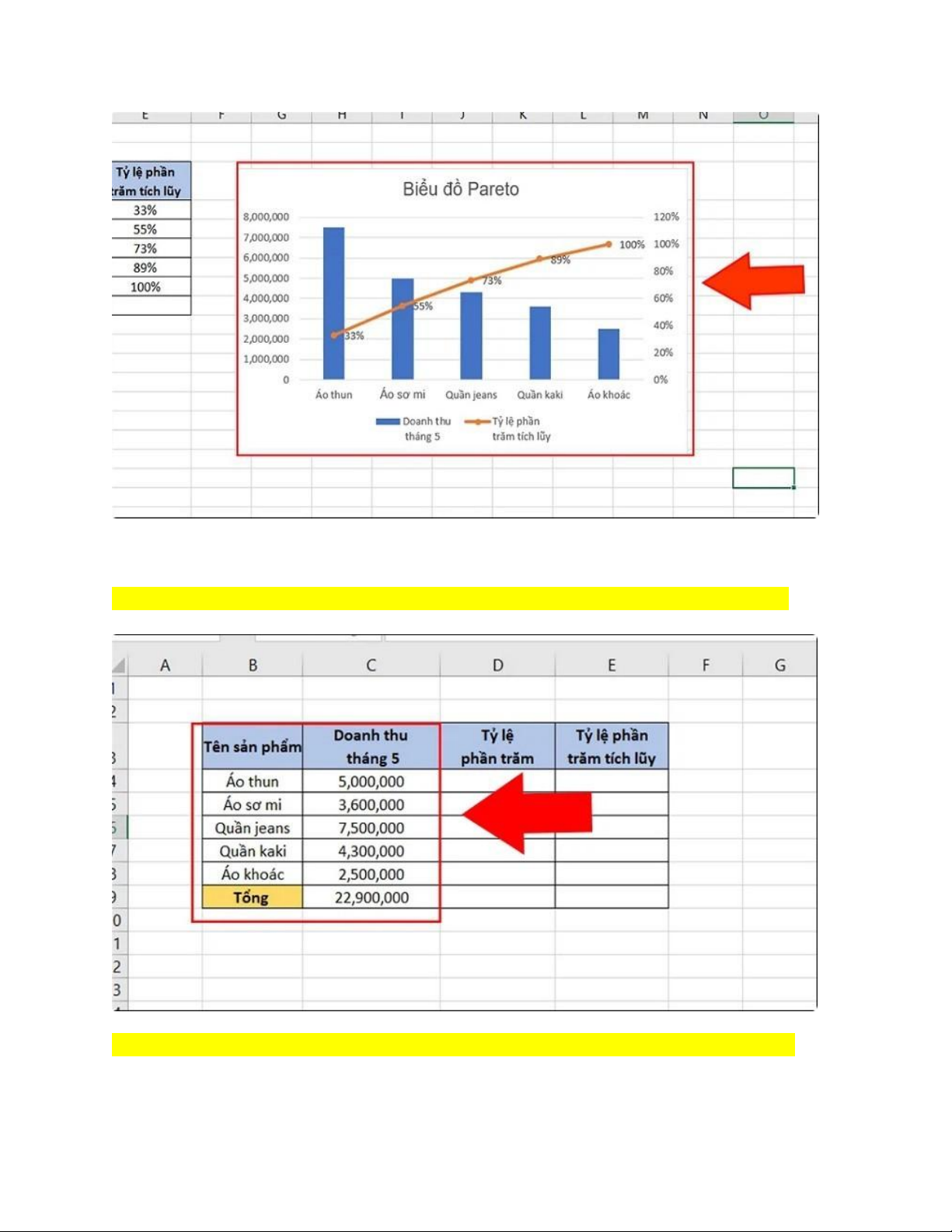 Bước 5: Sau khi đã có được bảng dữ liệu đầy đủ trên Excel, bạn tiến hành vẽ biểu đồ Pareto.