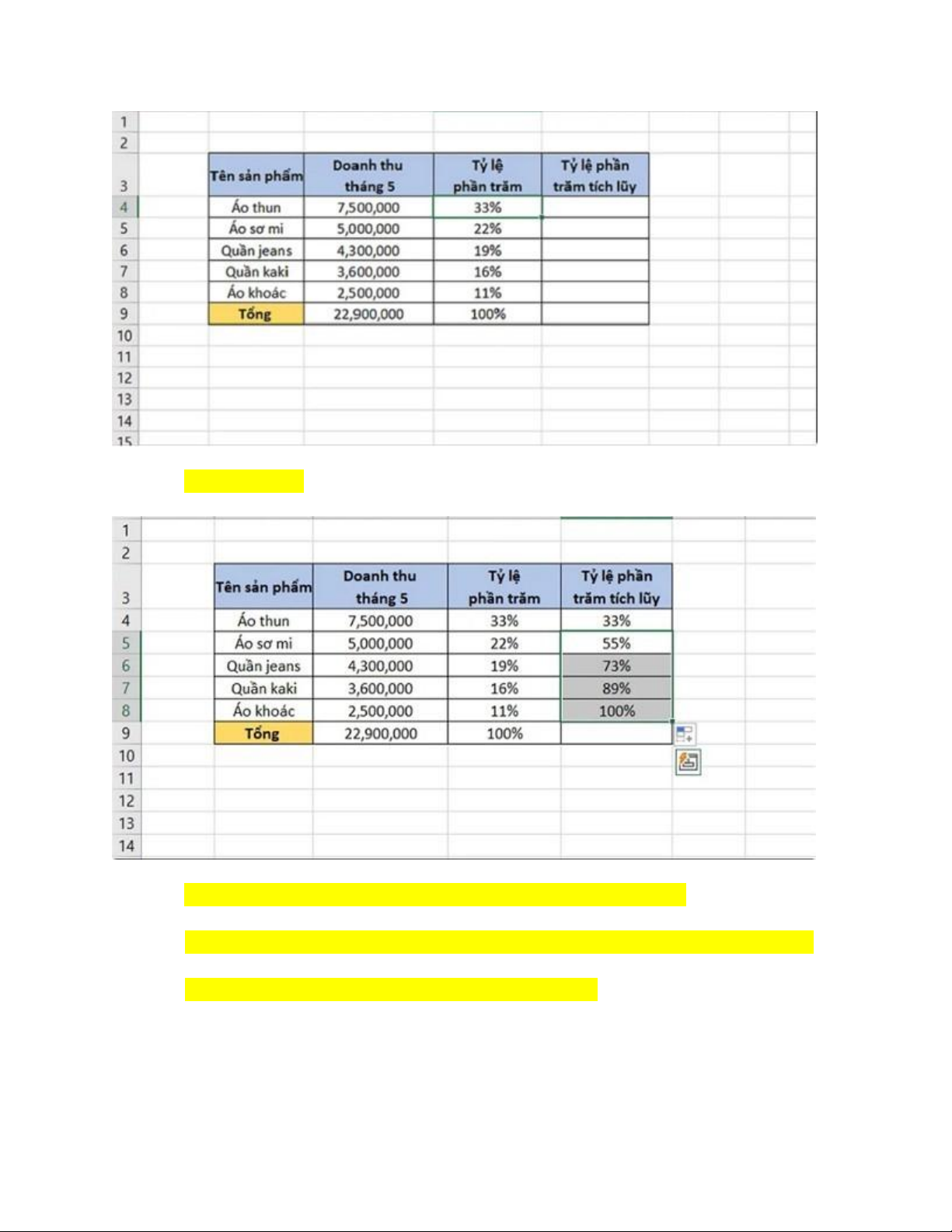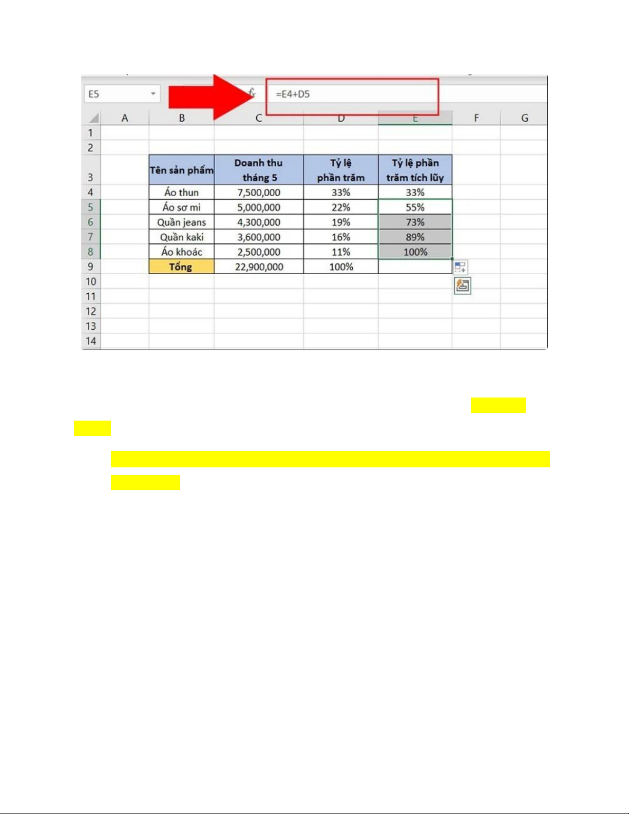 Thành phần n = % Tích lũy của thành phần n-1 + % thành phần n.