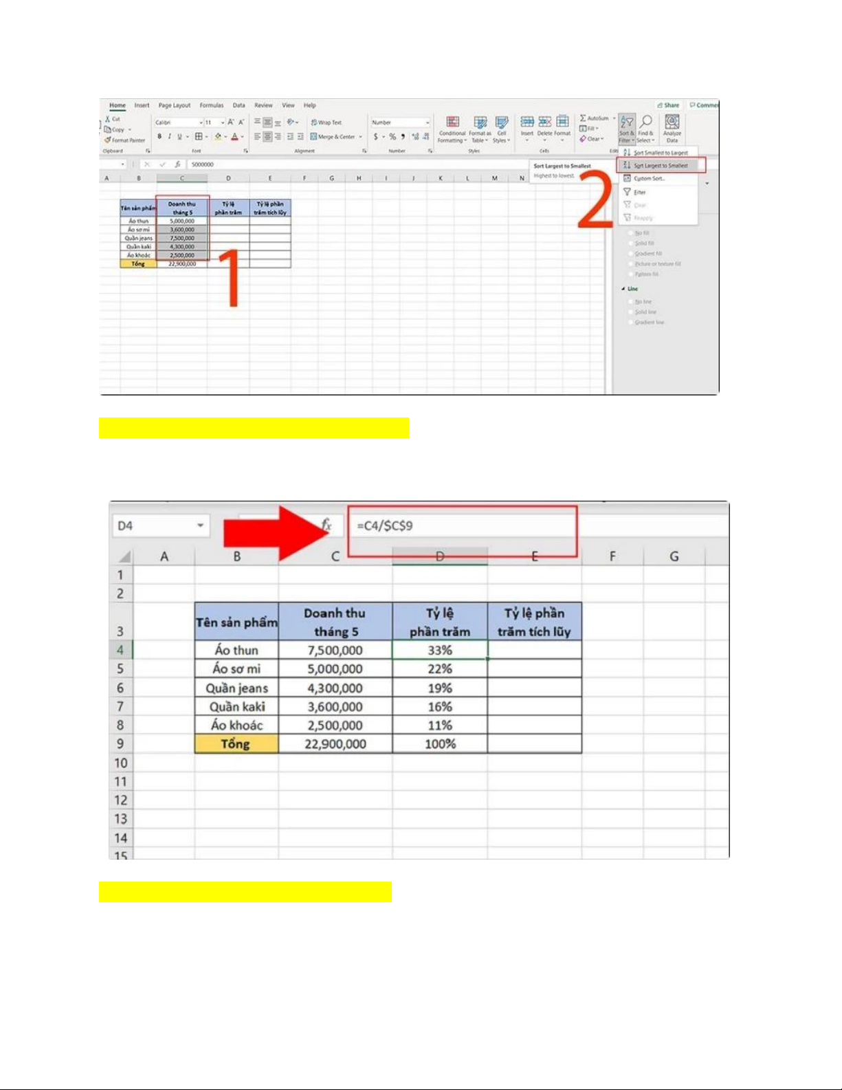 Bước 2: sắp xếp các dữ liệu có số lượng từ lớn nhất đến nhỏ