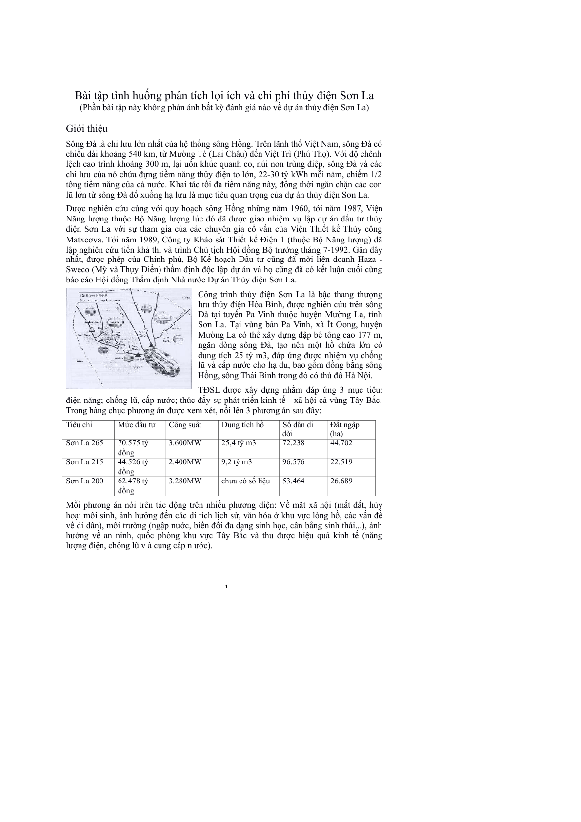 (Phần bài tập này không phản ánh bất kỳ đánh giá nào về dự án thủy điện Sơn La) Giới thiệu