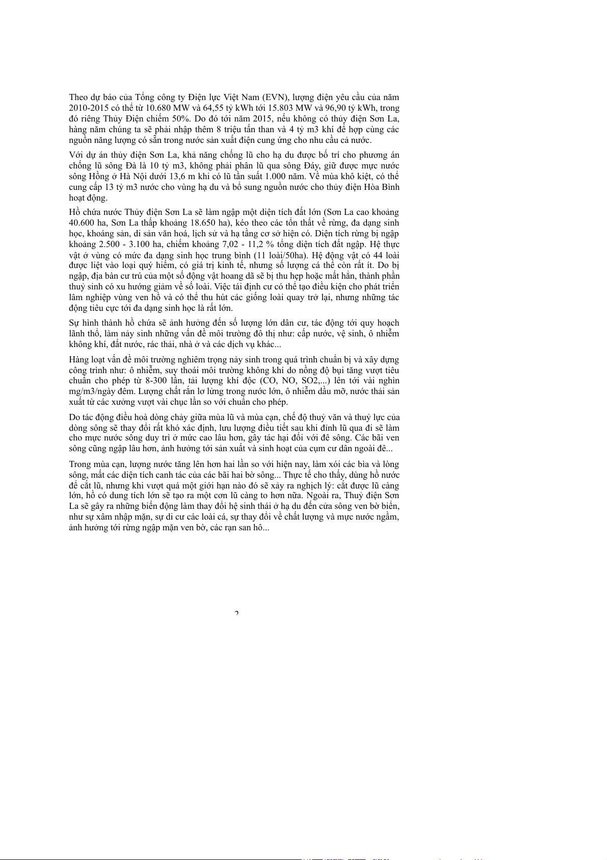 đó riêng Thủy Điện chiếm 50%. Do đó tới năm 2015, nếu không có thủy điện Sơn La,