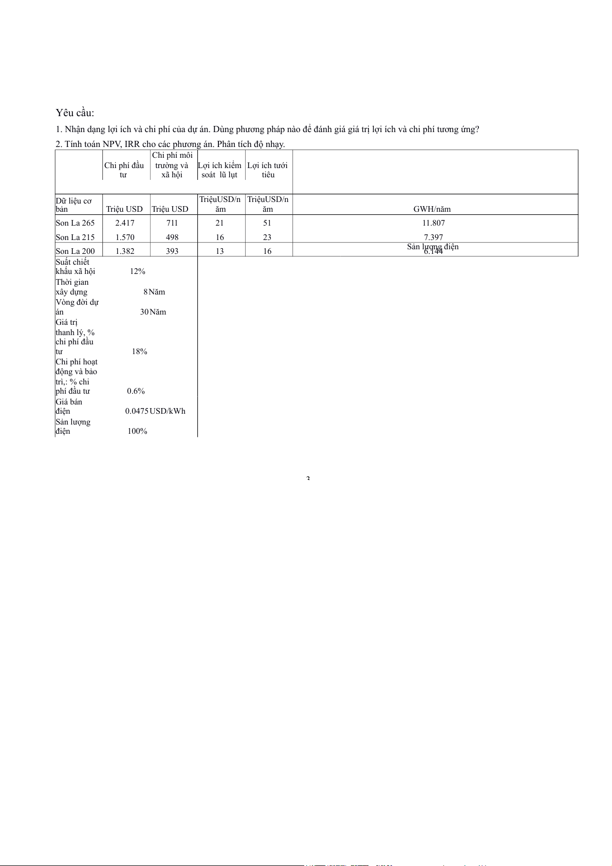 Bài tập tình huống phân tích lợi ích và chi phí thủy điện Sơn La