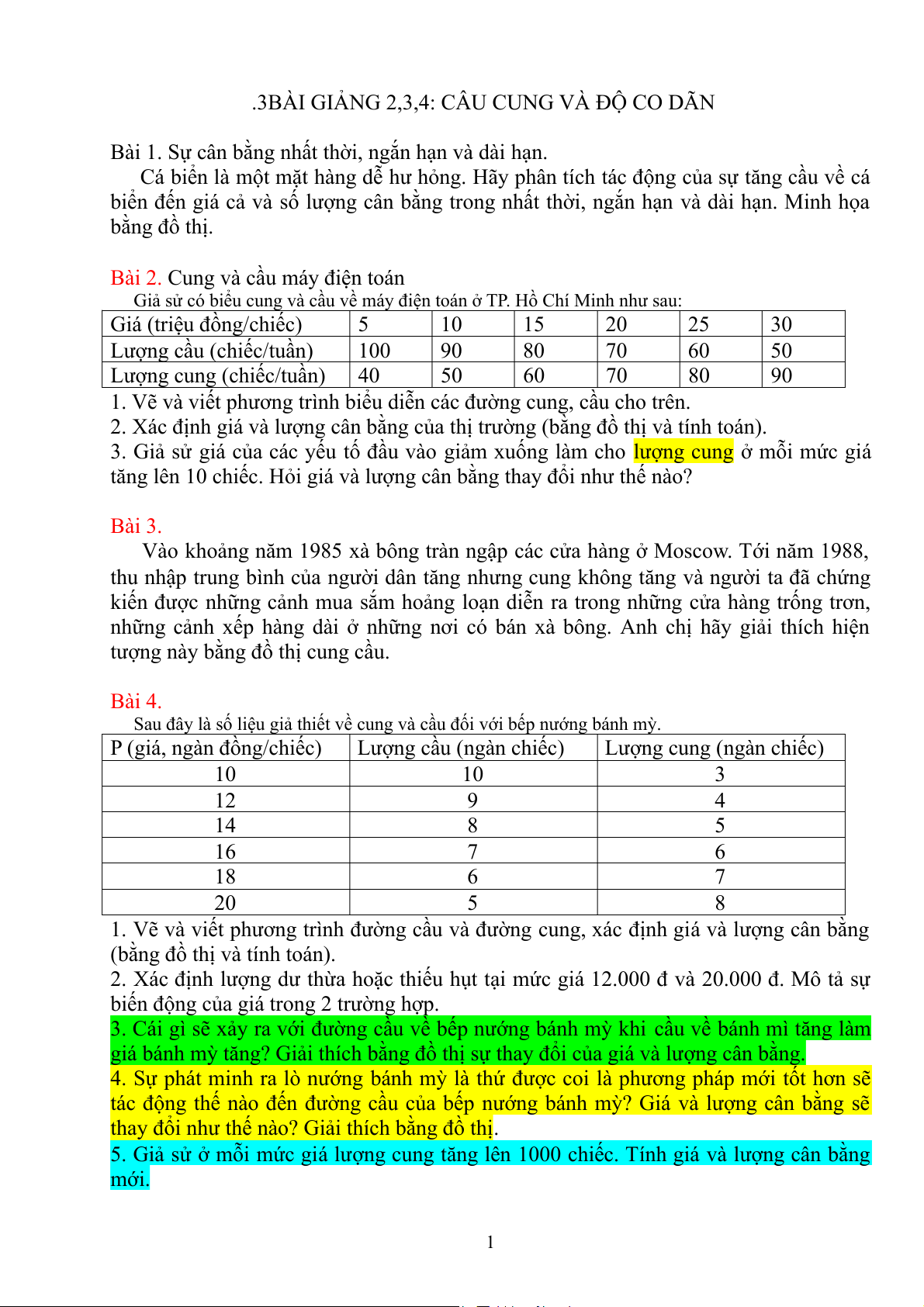 tăng lên 10 chiếc. Hỏi giá và lượng cân bằng thay đổi như thế nào? Bài 3.