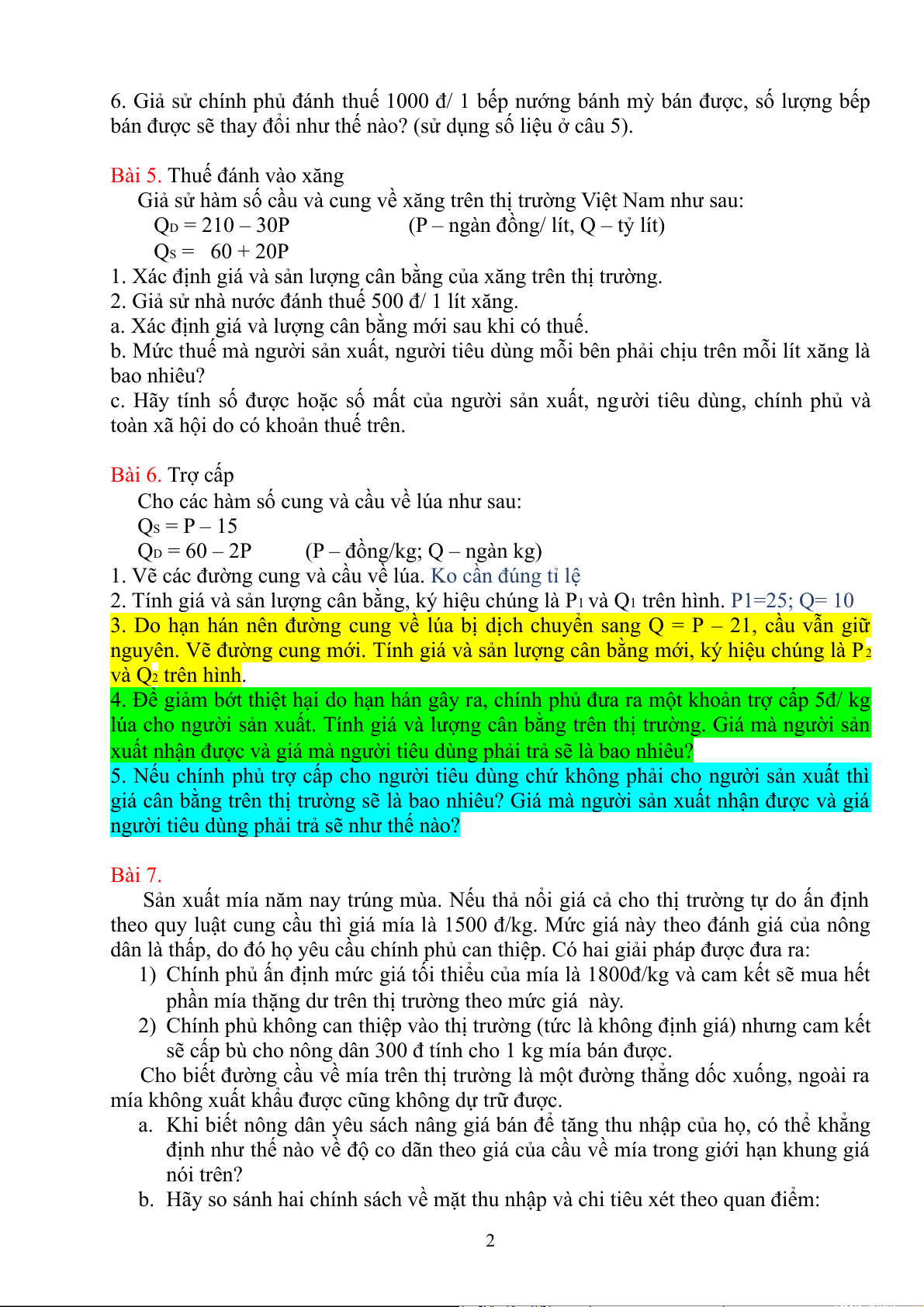 2. Giả sử nhà nước đánh thuế 500 đ/ 1 lít xăng.