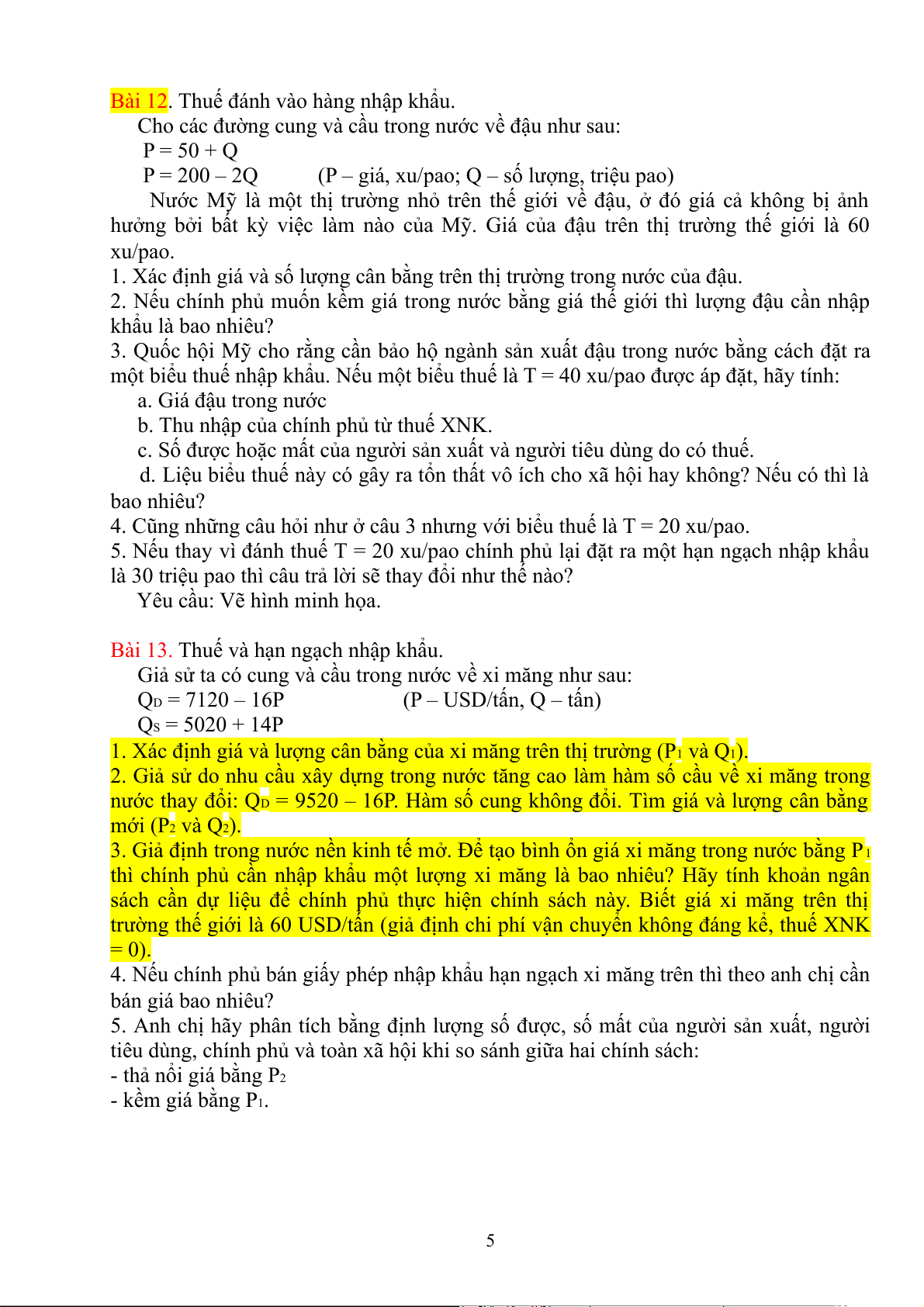 4. Chính phủ quyết định đánh thuế 1 USD/đv sản phẩm. Xác định giá và sản lượng tối