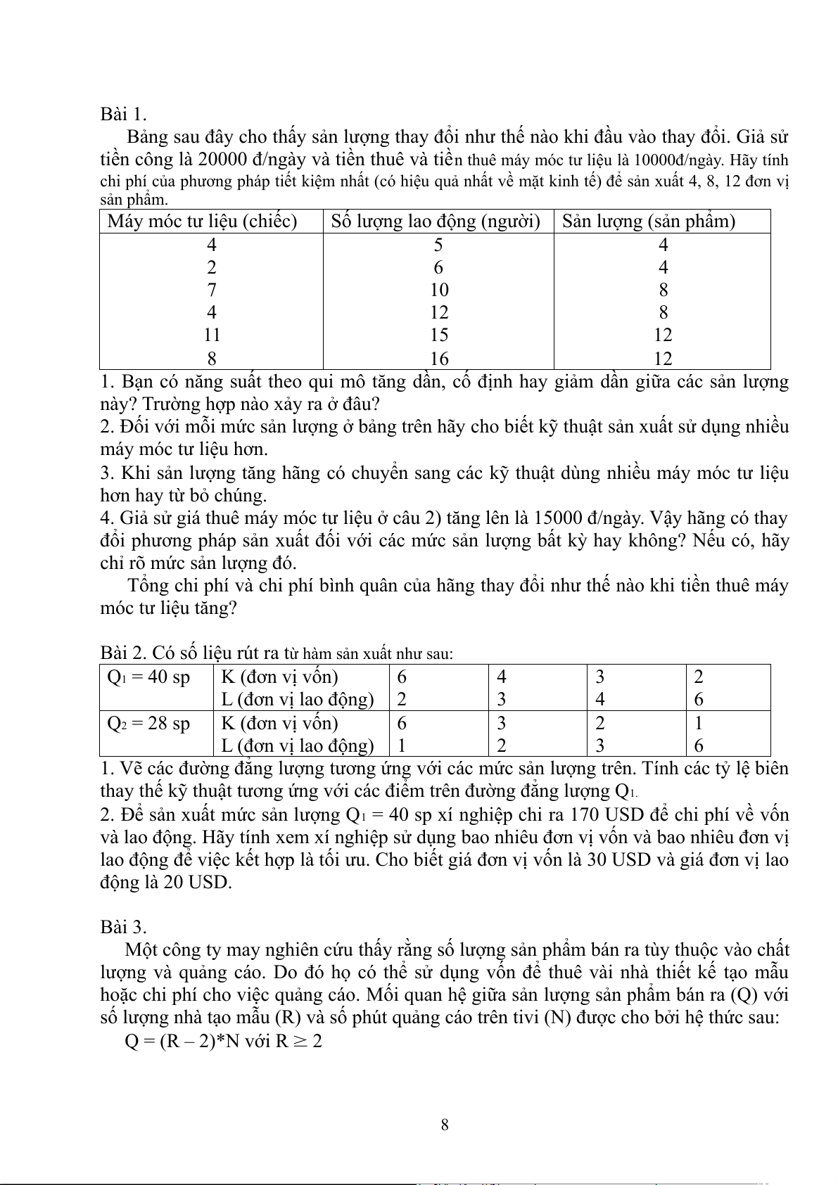 Bài 8. Giả sử chi phí biên của một hãng cạnh tranh được cho là: MC = 3 + 2Q. Nếu giá
