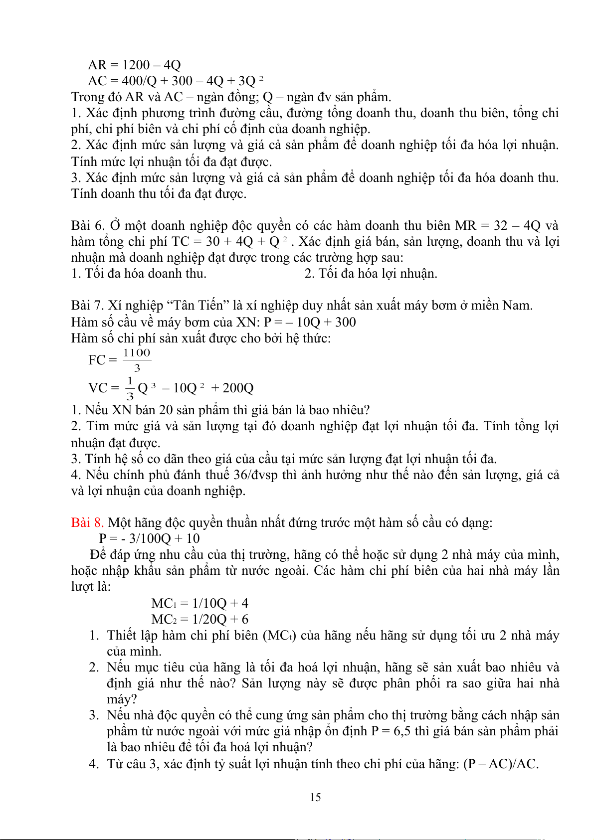 Bài 6. Ở một doanh nghiệp độc quyền có các hàm doanh thu biên MR = 32 – 4Q và