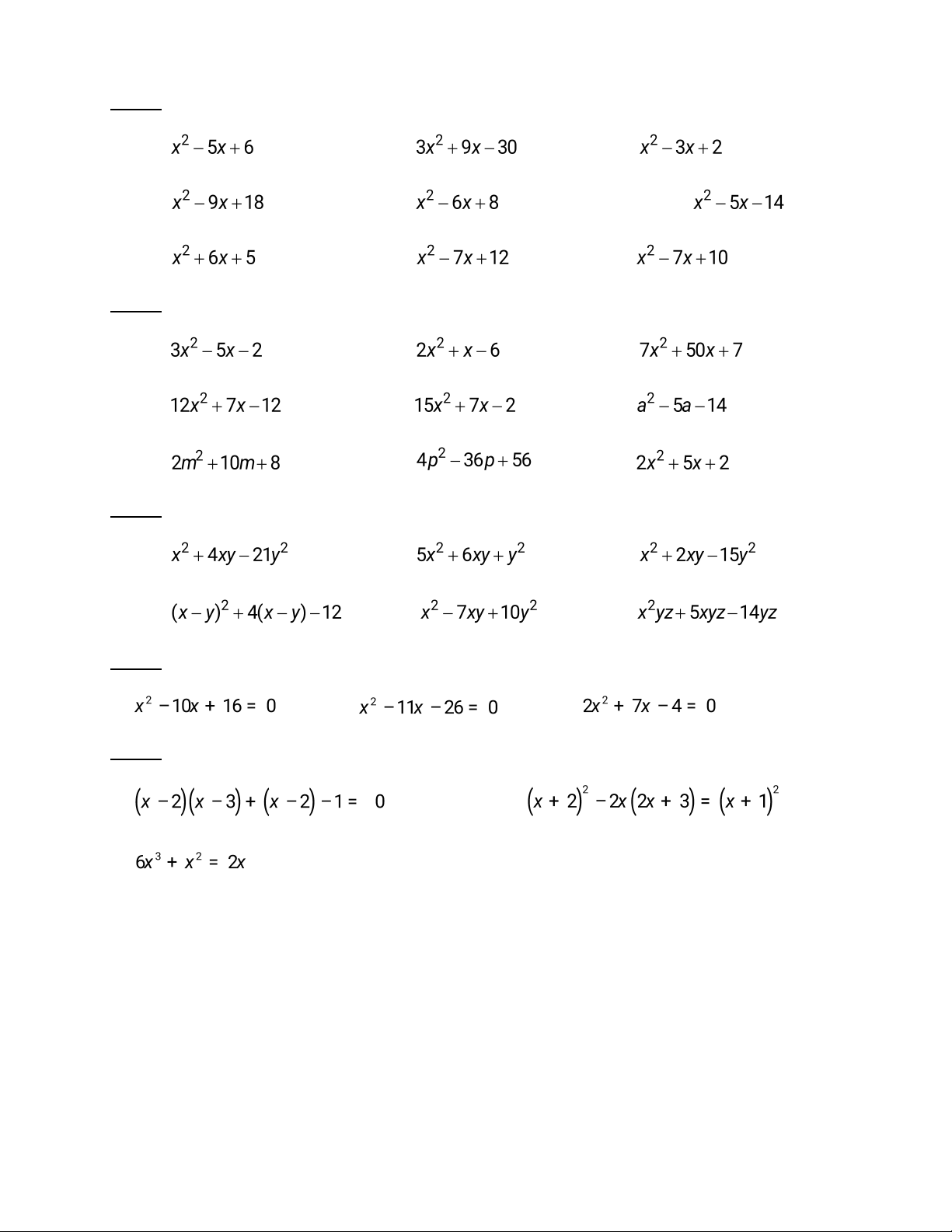 Bài 3: Phân tích các đa thức sau thành nhân tử: (tách một hạng tử thành nhiều hạng tử) a) b) c) d) e) f) Bài 4: Tìm x biết: a) b) c) Bài 5: Tìm x biết: a) b) c) Tìm x, biết: