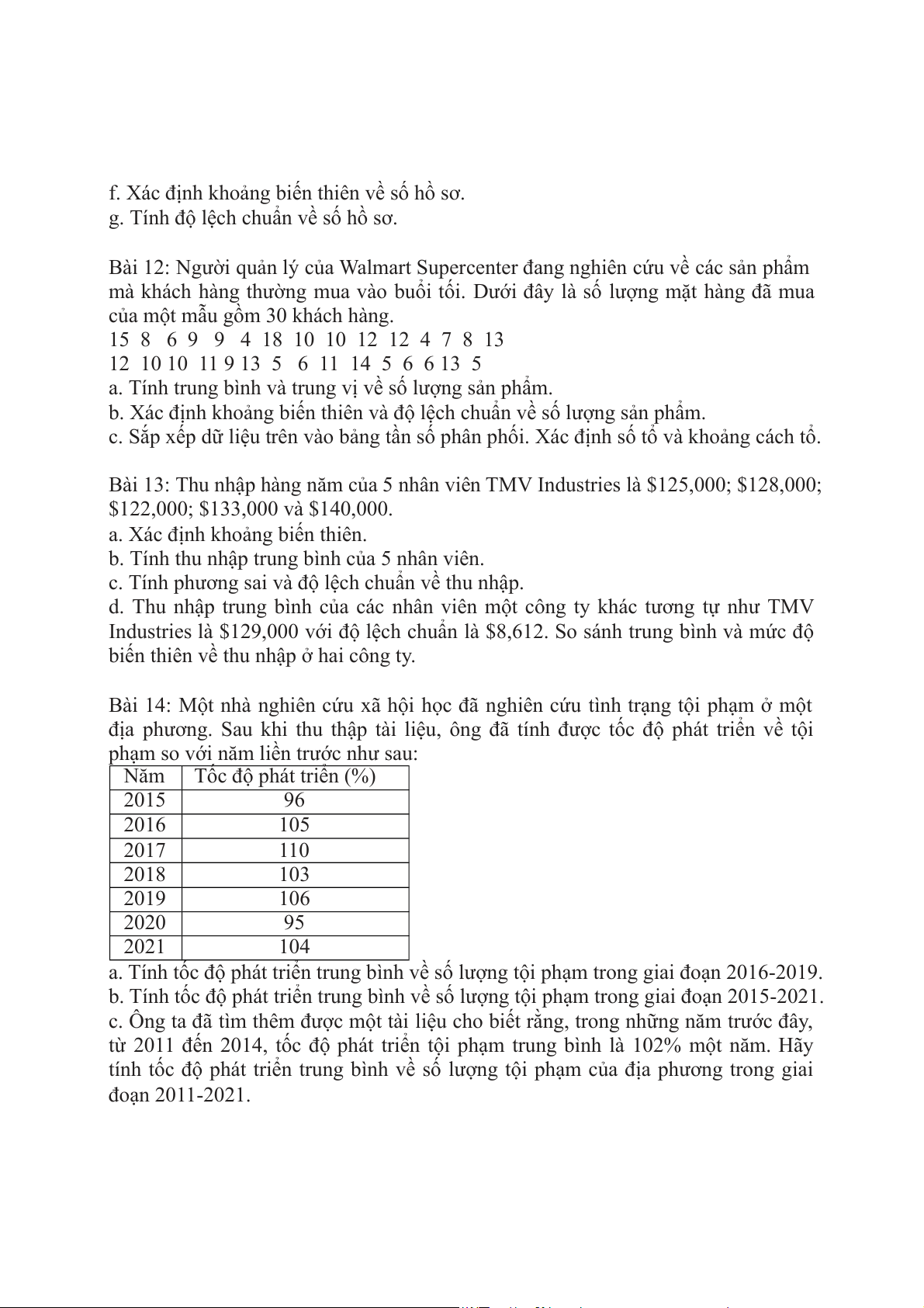 Bài 13: Thu nhập hàng năm của 5 nhân viên TMV Industries là $125,000; $128,000;