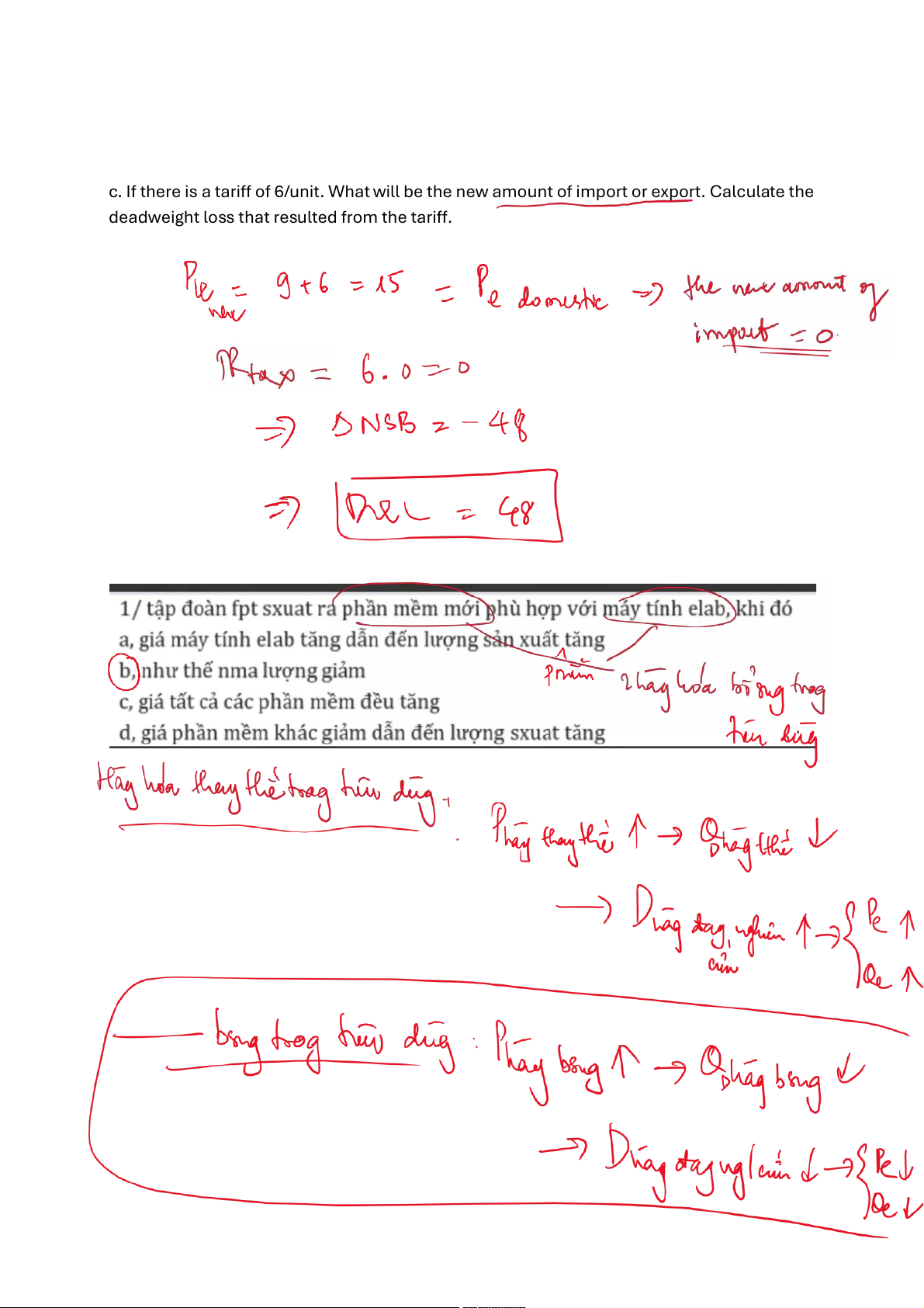 c. If there is a tariff of 6/unit. What will be the new amount of import or export. Calculate the