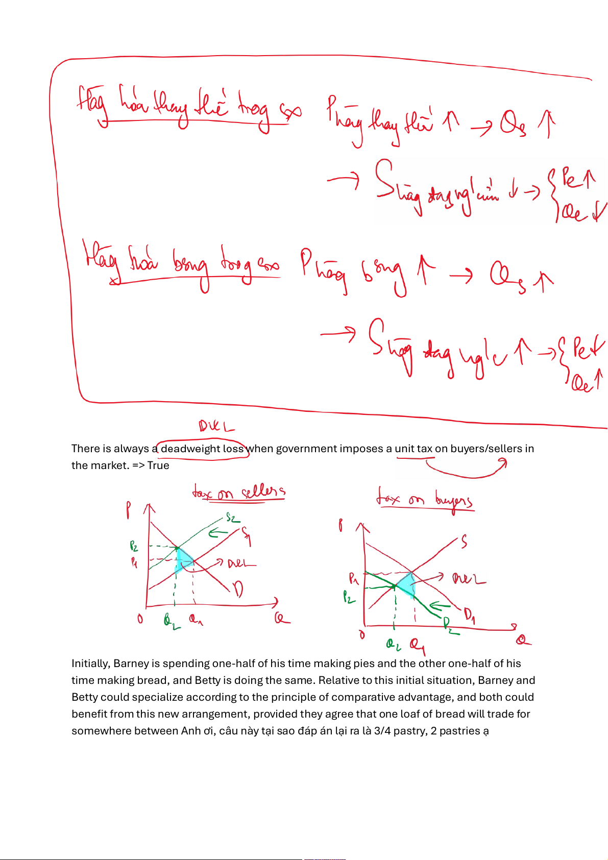 when government imposes a unit tax on buyers/sellers in the market. => True